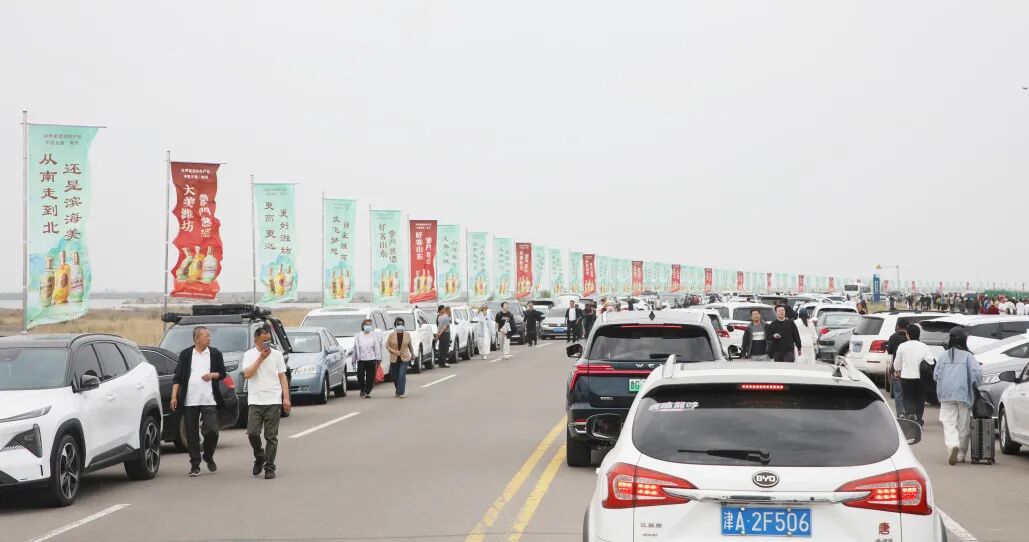 潍坊滨海云门国际放飞场,云门酱酒品牌形象全域铺展,道旗猎猎、彩球翩跹,与漫天飞舞的风筝相映成趣。