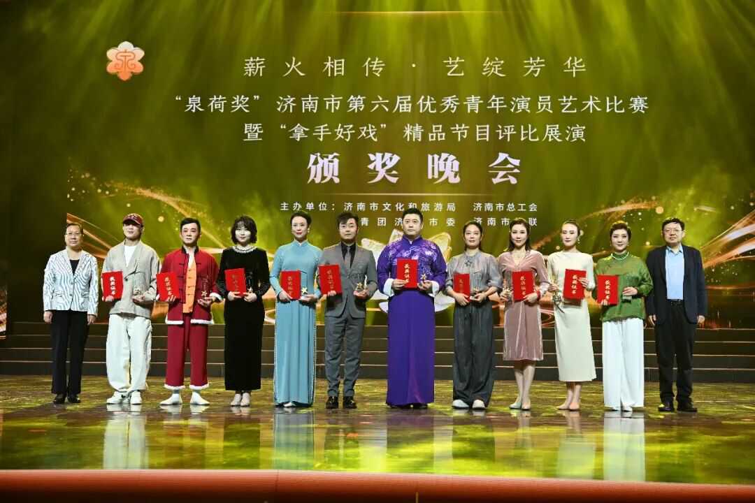 在热烈的氛围中,与会领导分别为“泉荷奖”大奖演员、“泉荷奖”十佳演员、优秀青年演员代表以及“拿手好戏”精品节目获奖代表颁发证书与奖杯。晚会在昂扬向上的歌曲《青春向太阳》中圆满落幕。整场活动集文艺展演、荣誉表彰于一体,全面展现了济南文艺人才培养与舞台艺术创作的丰硕成果,进一步激发了全市文艺工作者守正创新、勇攀高峰的创作热情。