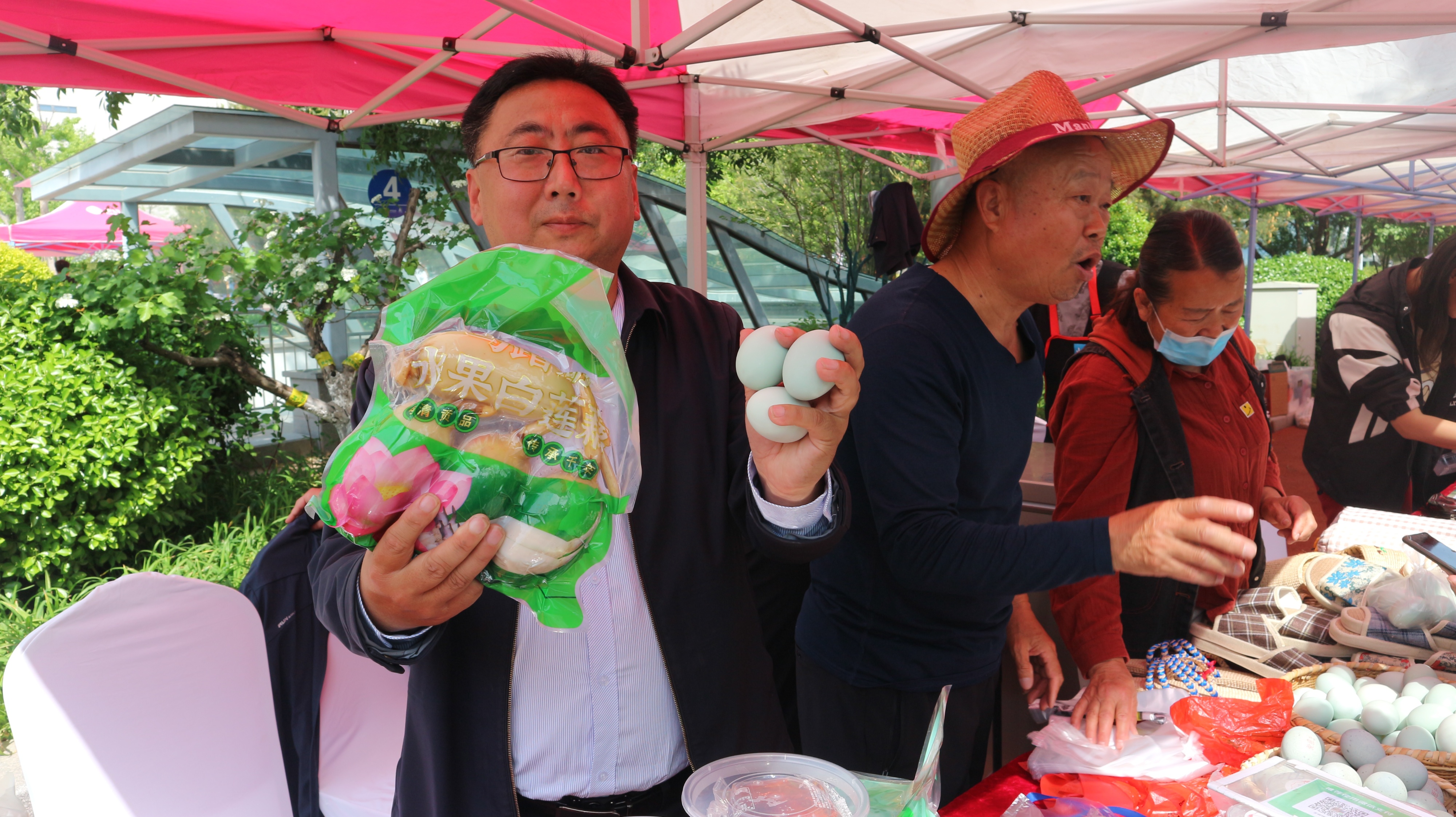 桓台县起凤镇辛泉村的展位前,金丝鸭蛋、网红凉皮等产品整齐摆放,村党总支部书记、村委会主任刘辉忙着接待前来选购的市民:“我们的金丝鸭蛋,都是马踏湖区吃小鱼小虾和水草长大的,蛋黄饱满、香味浓郁;网红凉皮用高筋小麦制作,搭配纯芝麻磨制的芝麻酱和独家秘方辣椒油,吃起来筋道十足。”他表示,共富市集为湖区农副产品搭建了进城的桥梁,“就是要把马踏湖区的好东西端上市民餐桌,让我们湖区不仅有好收成,还有好收入。”