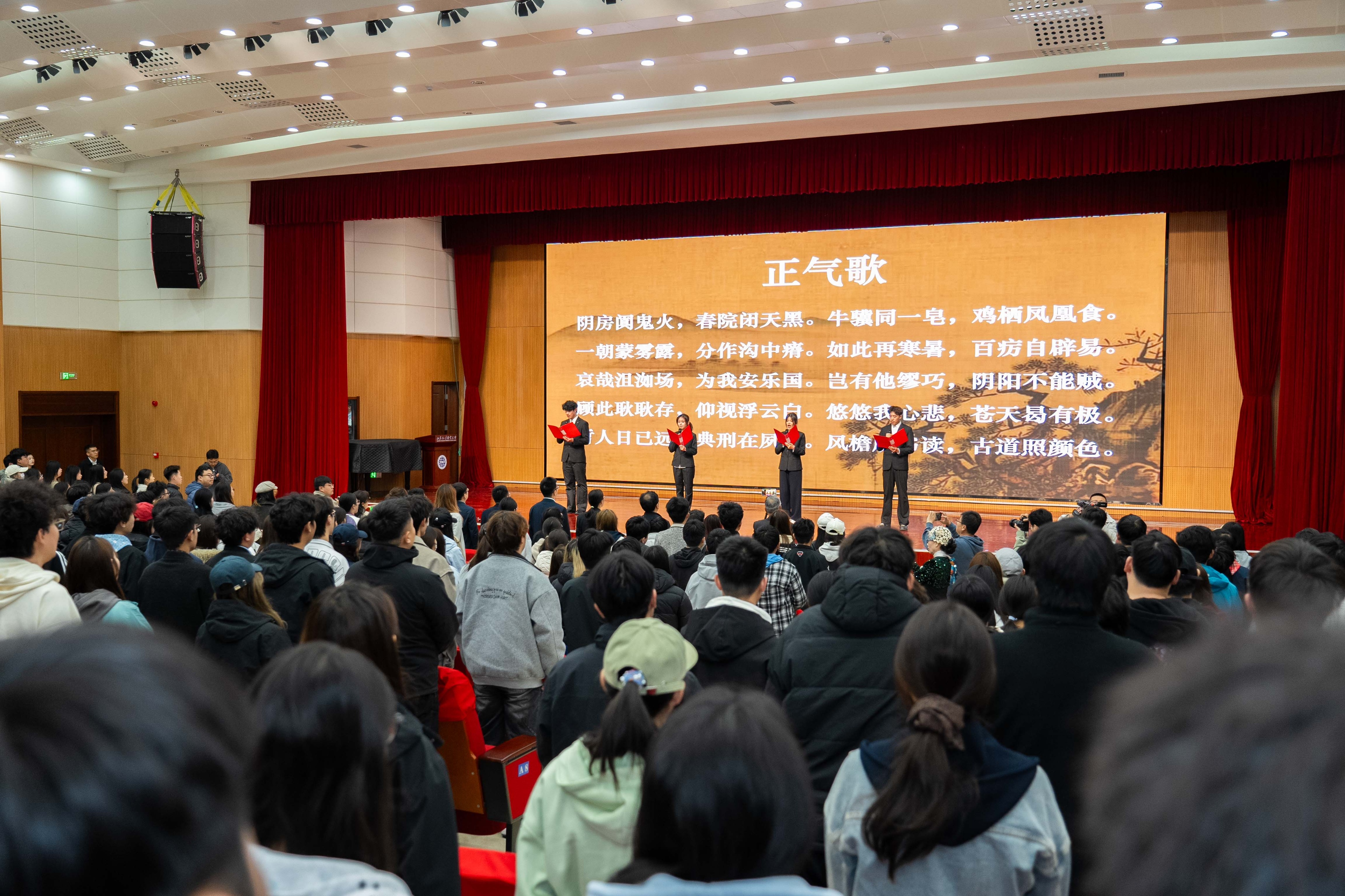启动仪式现场亮点纷呈、氛围浓厚。伴随着悠扬旋律,山东外事职业大学师生身着整齐服装,齐声诵读《正气歌》,铿锵有力的诵读声传递经典力量、诠释家国情怀,赢得现场阵阵掌声。仪式期间,系列特色环节依次开展:乳山市文联向学校捐赠《大乳山文艺》系列书籍,丰富校园馆藏、搭建阅读平台;现场举行“阅读达人”赠送仪式,山东外事职业大学依据2025年度馆藏借阅数据,评选出10位“阅读达人”,并为其赠送冯德英“三花”系列经典著作,以榜样力量引领阅读风尚。