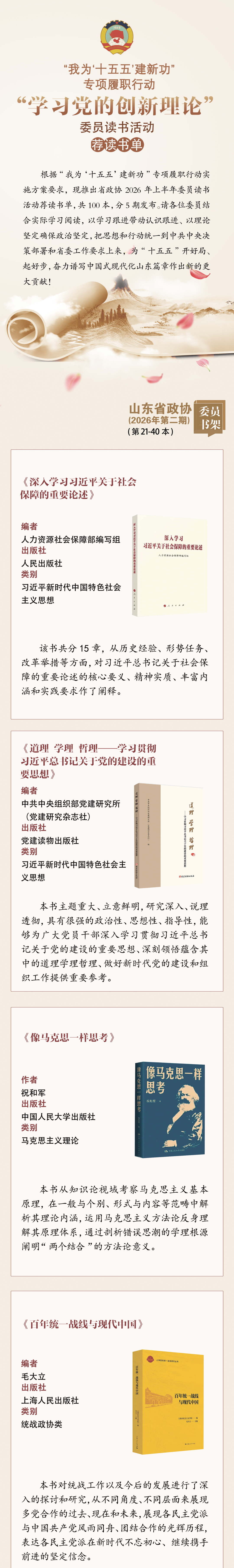 “学习党的创新理论”委员读书活动荐读书单2026上半年荐读书单(第21-40本)
