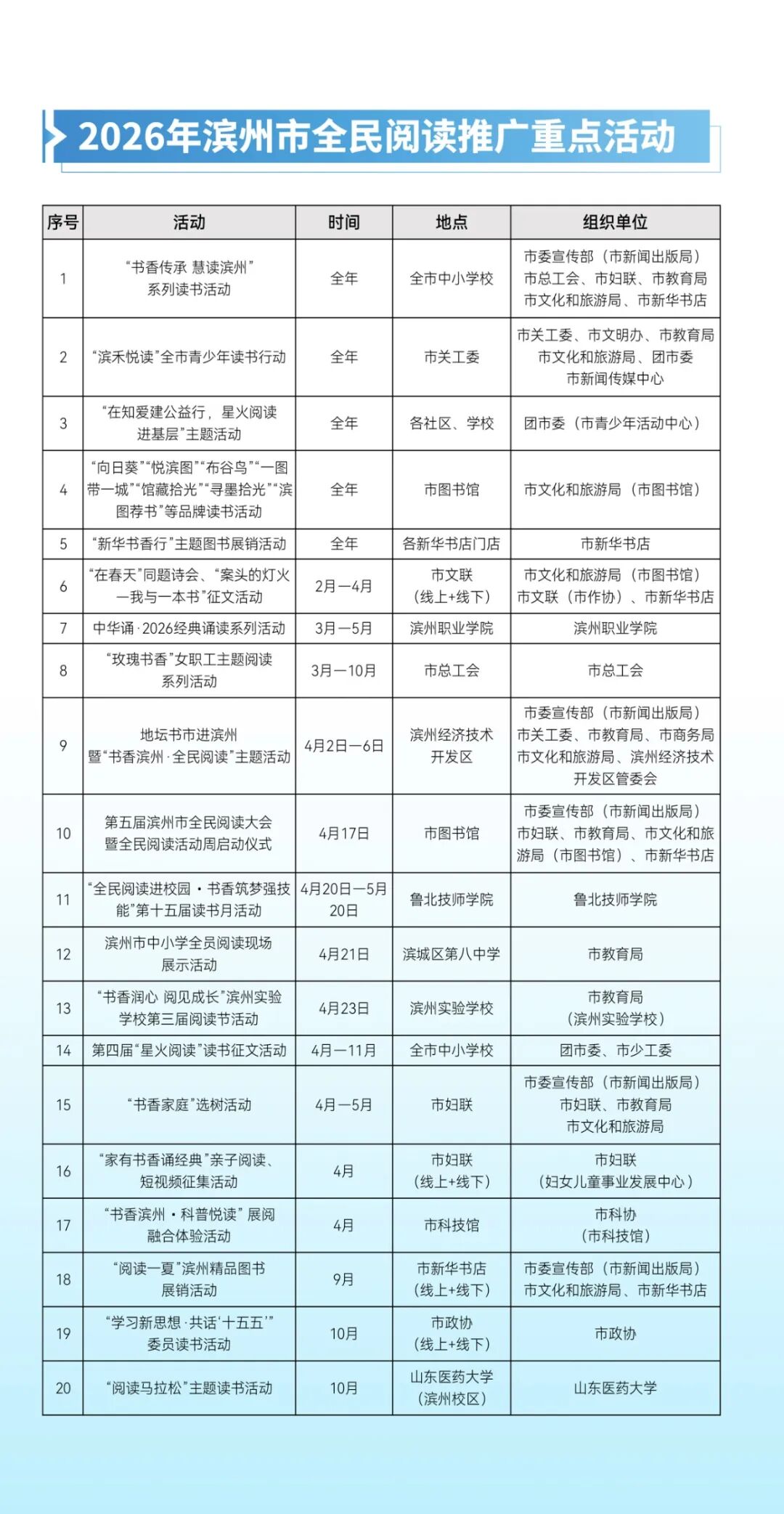书香满城 | 2026年滨州市全民阅读活动周重点活动精彩来袭