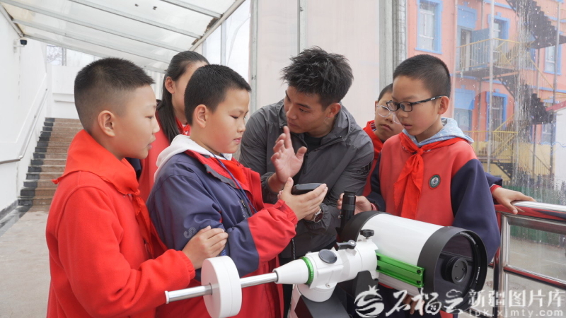 4月17日,专业人员指导吉木乃县直小学同学们调试天文望远镜,并进行观测。胡阿尼什·那斯哈提 摄