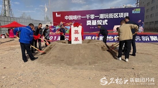 4月18日,中国喀什丝路环球中心·喀什中西亚国际贸易市场四期·1001潮玩街区项目举行奠基仪式。马丽娜 摄