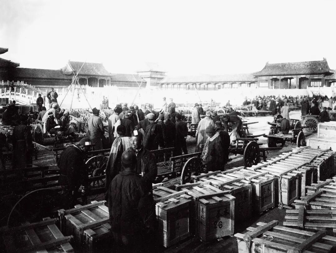 1933年3月,南迁文物在故宫装上木箱。