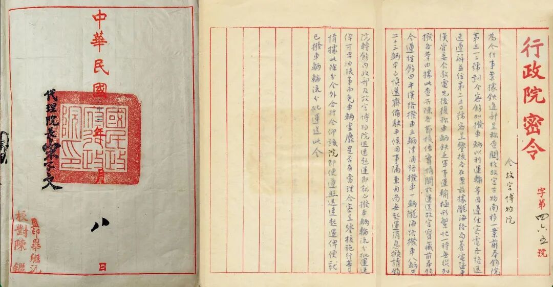 1933年,行政院关于南迁文物起运的密令。