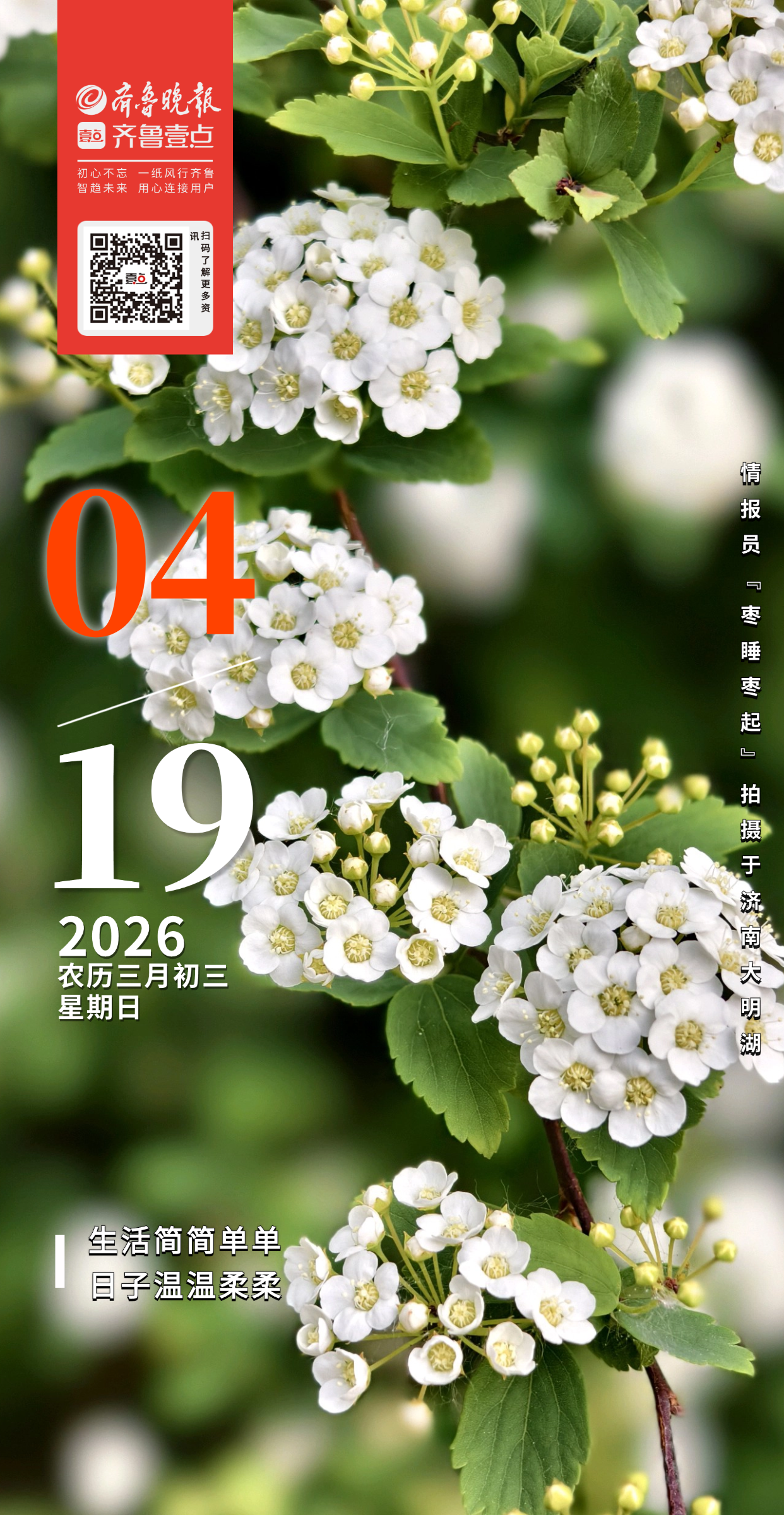 暮春时节济南大明湖畔春和景明,土庄绣线菊悄然盛放。细碎白花密密攒成团簇,似枝头落满轻雪,又像绿叶间缀着的细碎星光。微风拂过花影轻摇,清浅香气漫开,为明湖春色添了几分柔和的意趣。