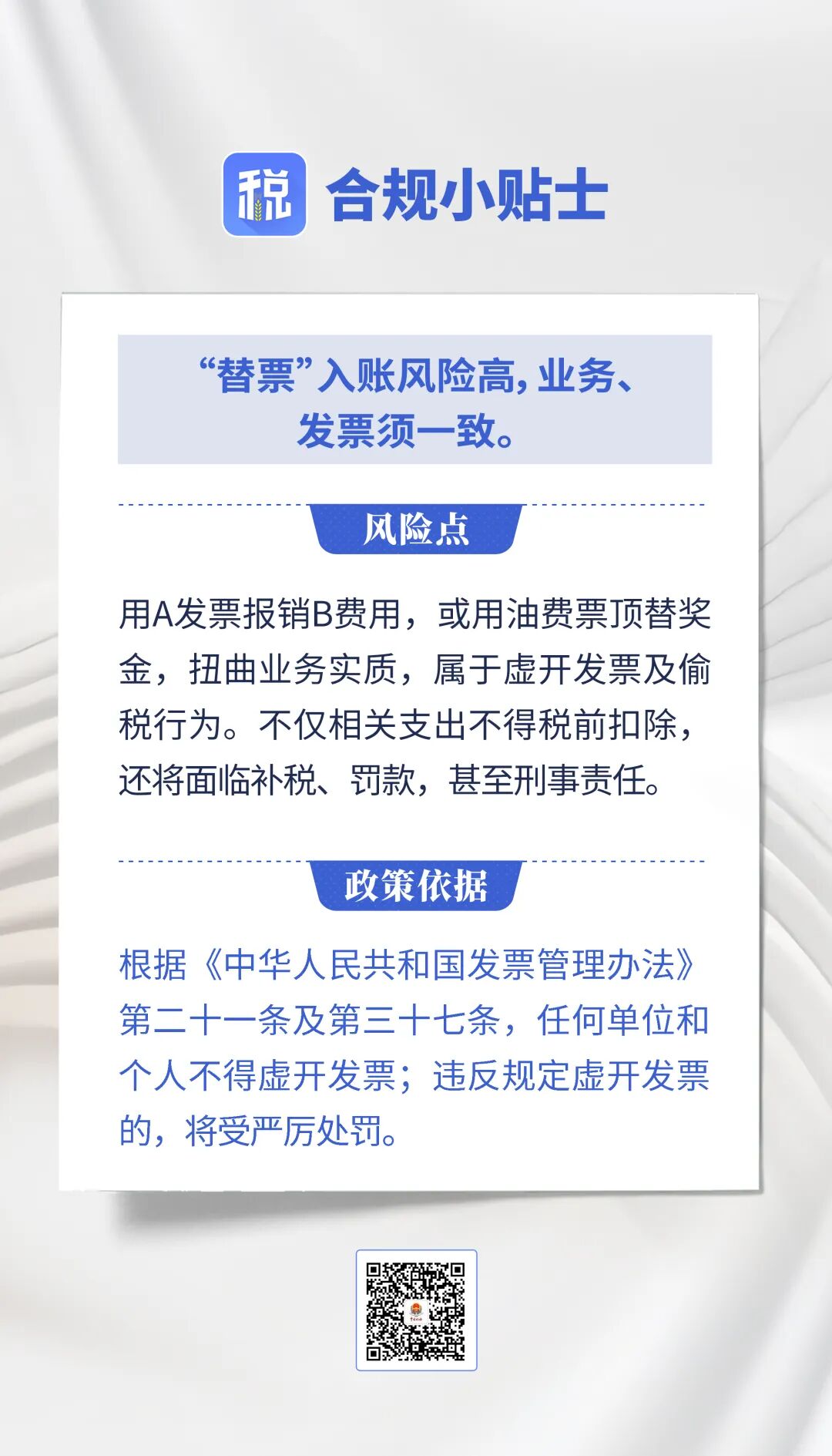 合规小贴士|“替票”入账风险高,业务、发票须一致