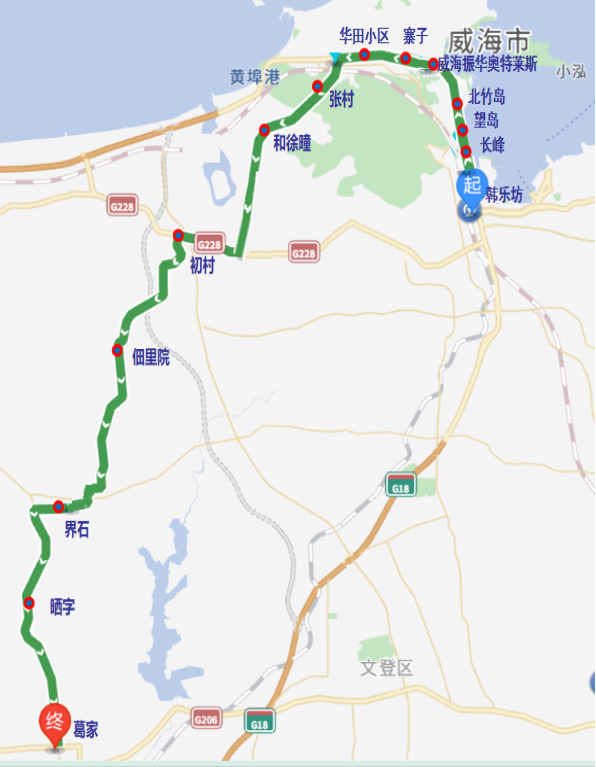 威海至葛家运行线路图