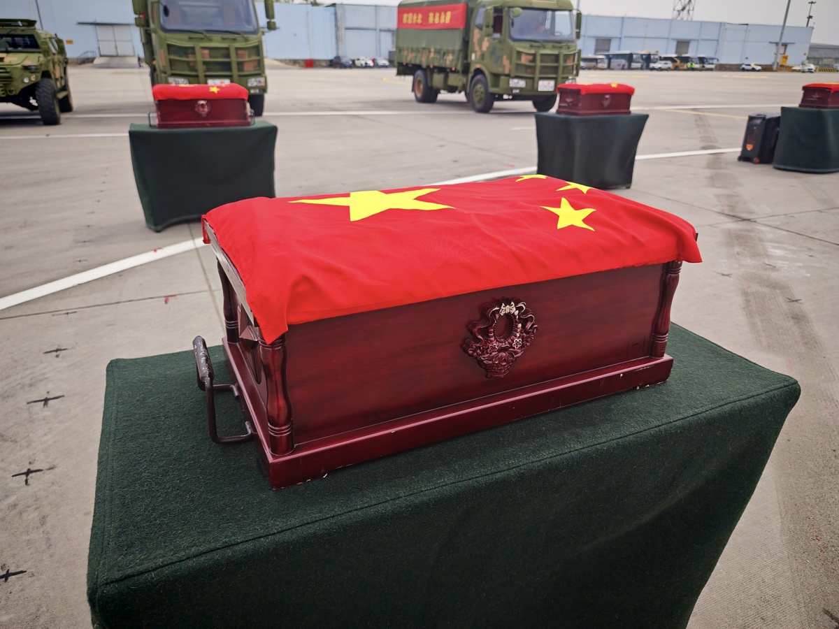 第十三批在韩志愿军烈士遗骸回国在即,沈阳桃仙机场举行现场演练