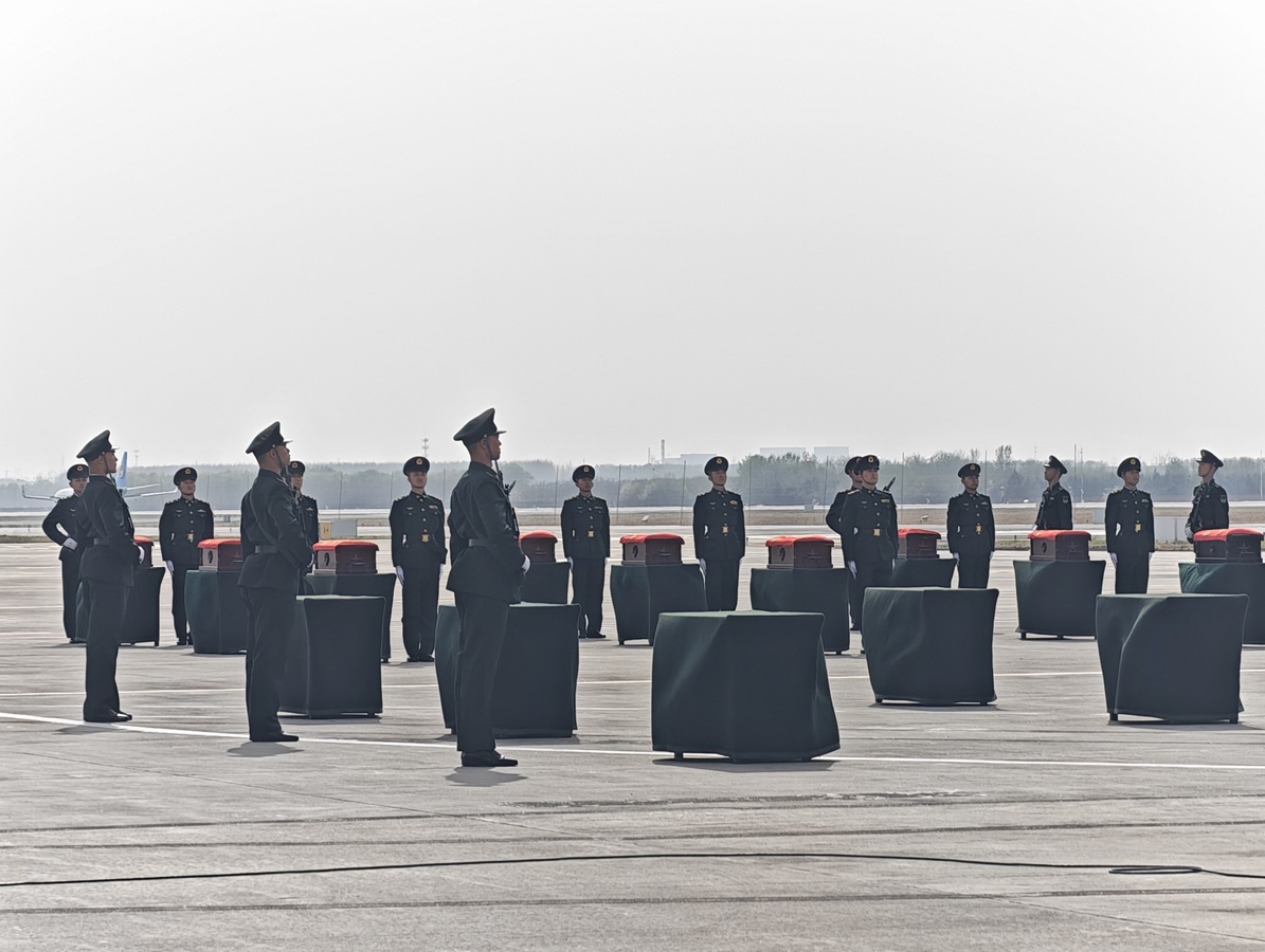 第十三批在韩志愿军烈士遗骸回国在即。4月19日,沈阳桃仙机场举行的第十三批在韩志愿军烈士遗骸迎回仪式演练,记者进行了现场探访。