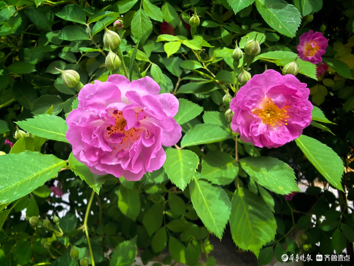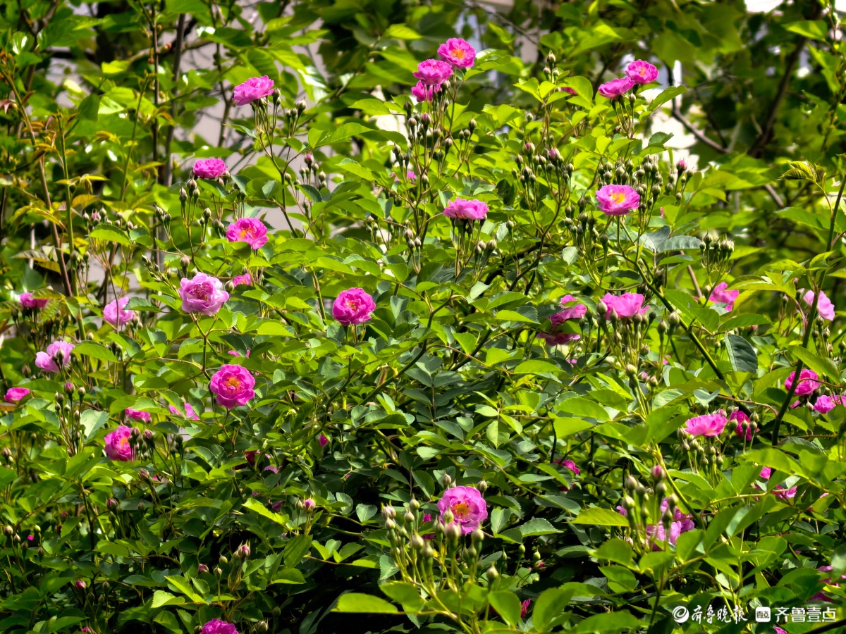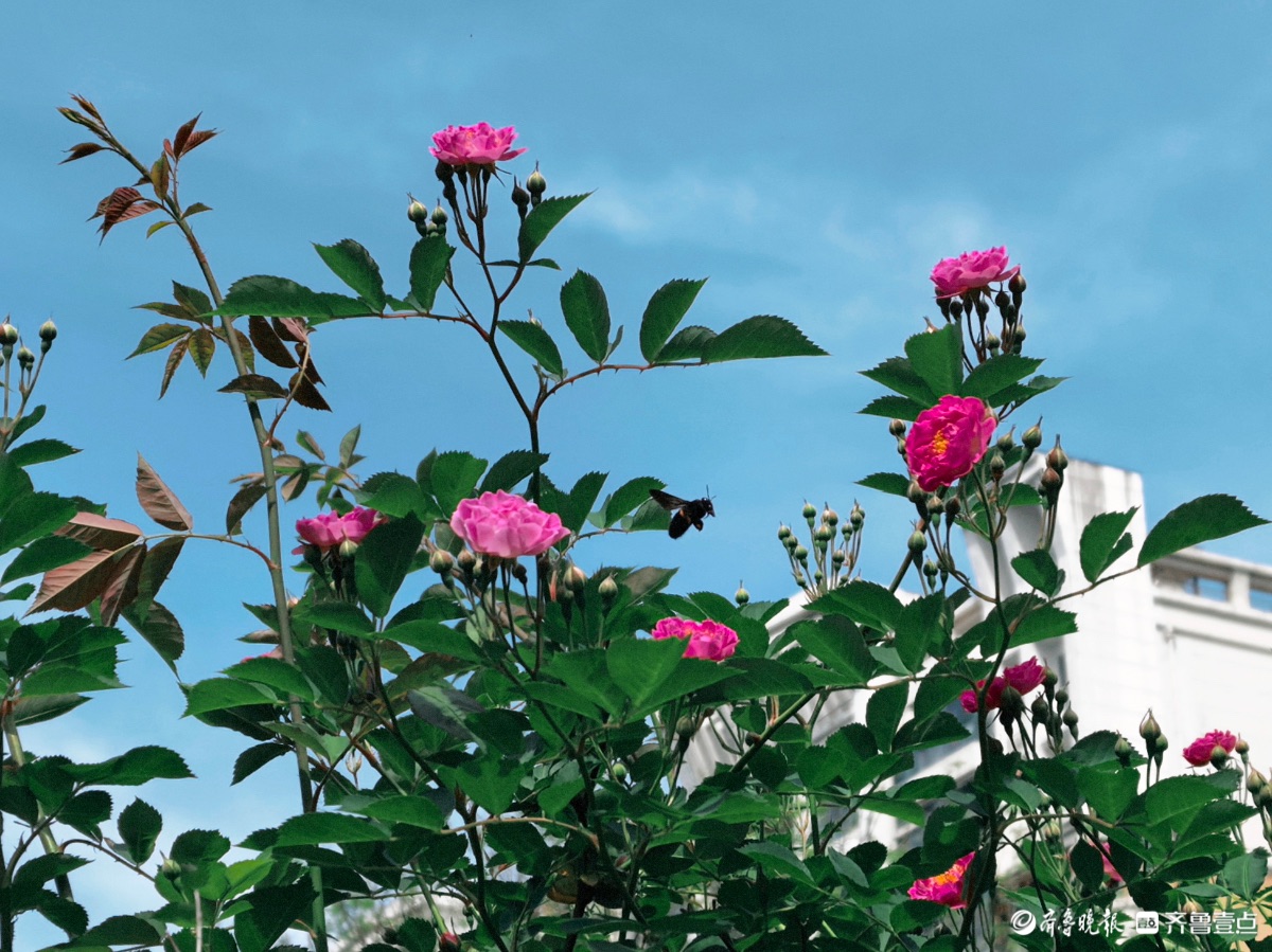 小区蔷薇花陆续开放,引来好多小蜜蜂