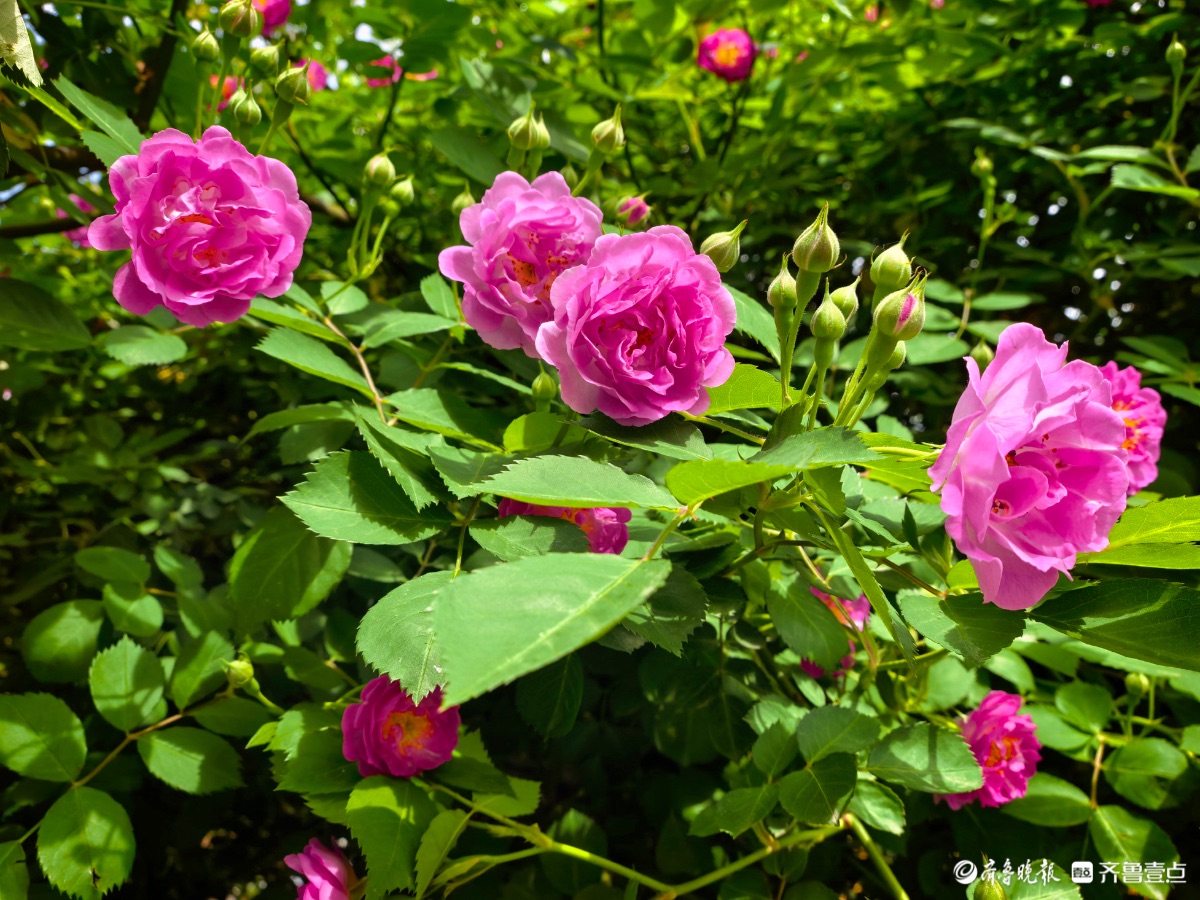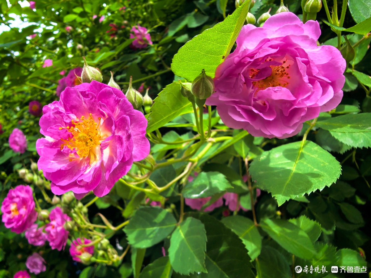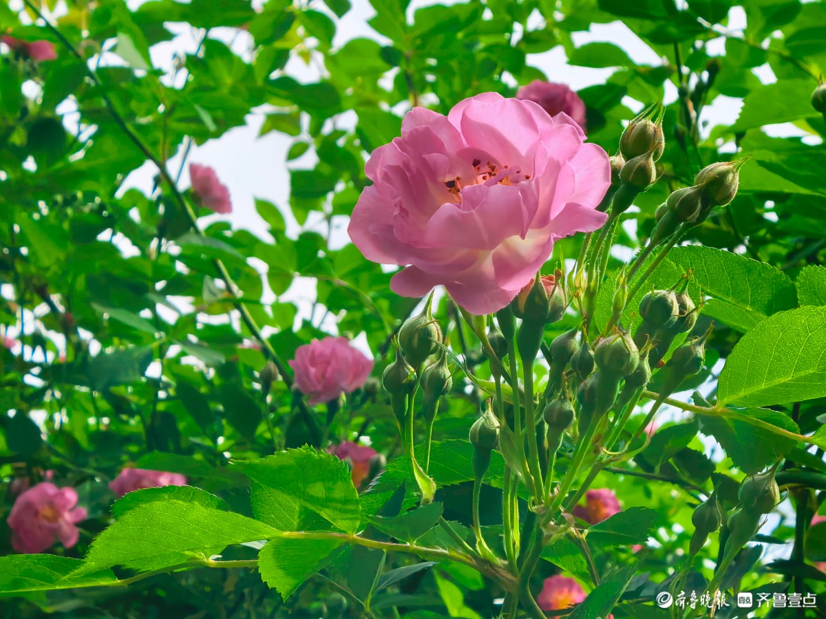 小区蔷薇花陆续开放,引来好多小蜜蜂