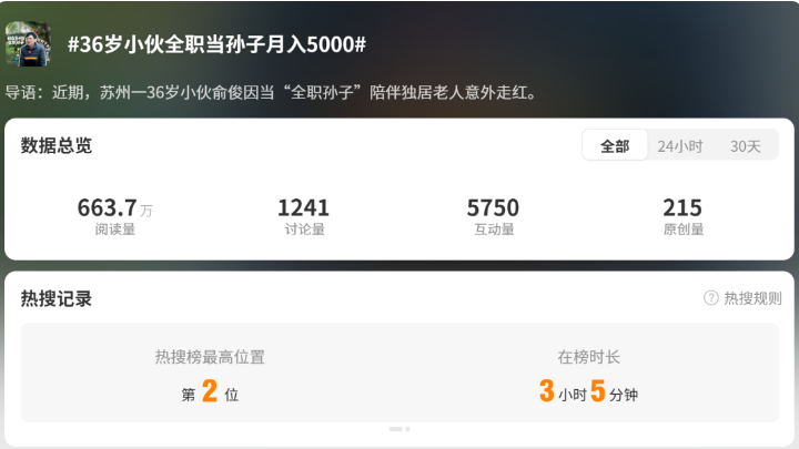 话题#36岁小伙全职当孙子月入5000#