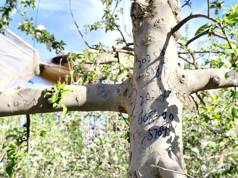 苹果树的编号为每年的产量 (央广网 马晓杉 摄)