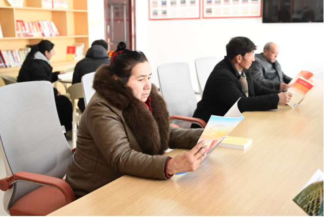 在喀什市色满乡吐格村的农村书屋里群众在看书。(资料图)喀什地区融媒体中心 记者曹宇婷 摄
