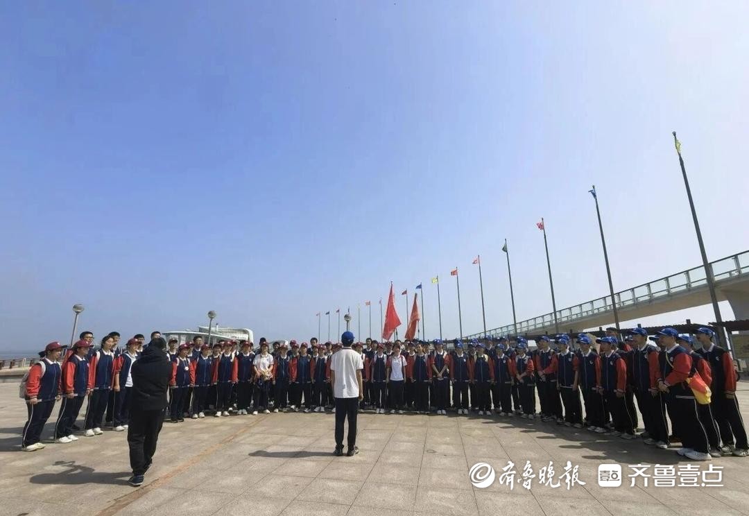 4月18日,烟台开发区高级中学以“行远励青春,筑梦报家国”为主题,组织师生开展远足研学活动。同学们走出校园,用脚步丈量热土,在实践中锤炼品格。而这场“远足研学”,恰好与黄渤海新区“舞乐山海”广场文化活动在时光塔广场和天马栈桥广场美好相遇,共同绘就了一幅青春与山海、知识与艺术交相辉映的生动图景。