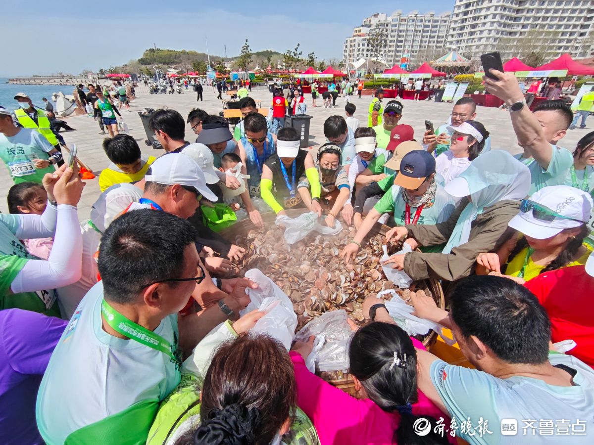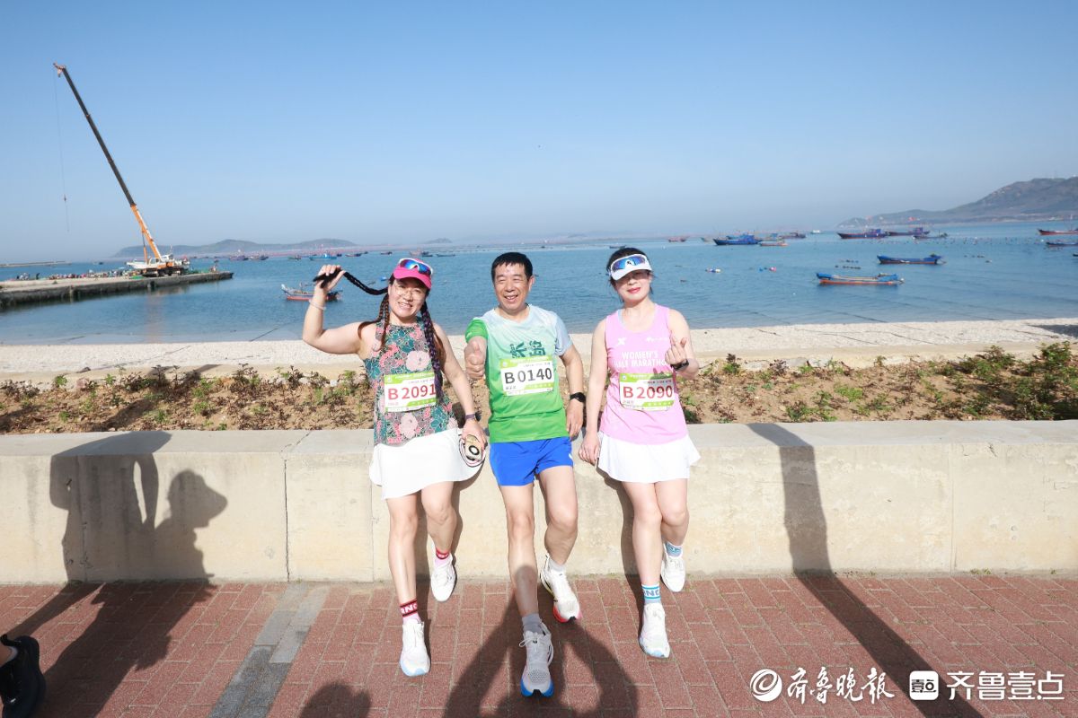 蔚蓝的大海让跑者停下脚步打卡拍照。