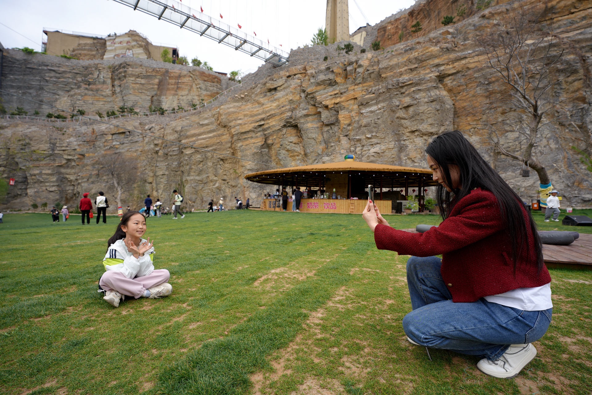 临沂高新区卧虎山田园旅游区,家长用镜头定格孩子的笑脸。