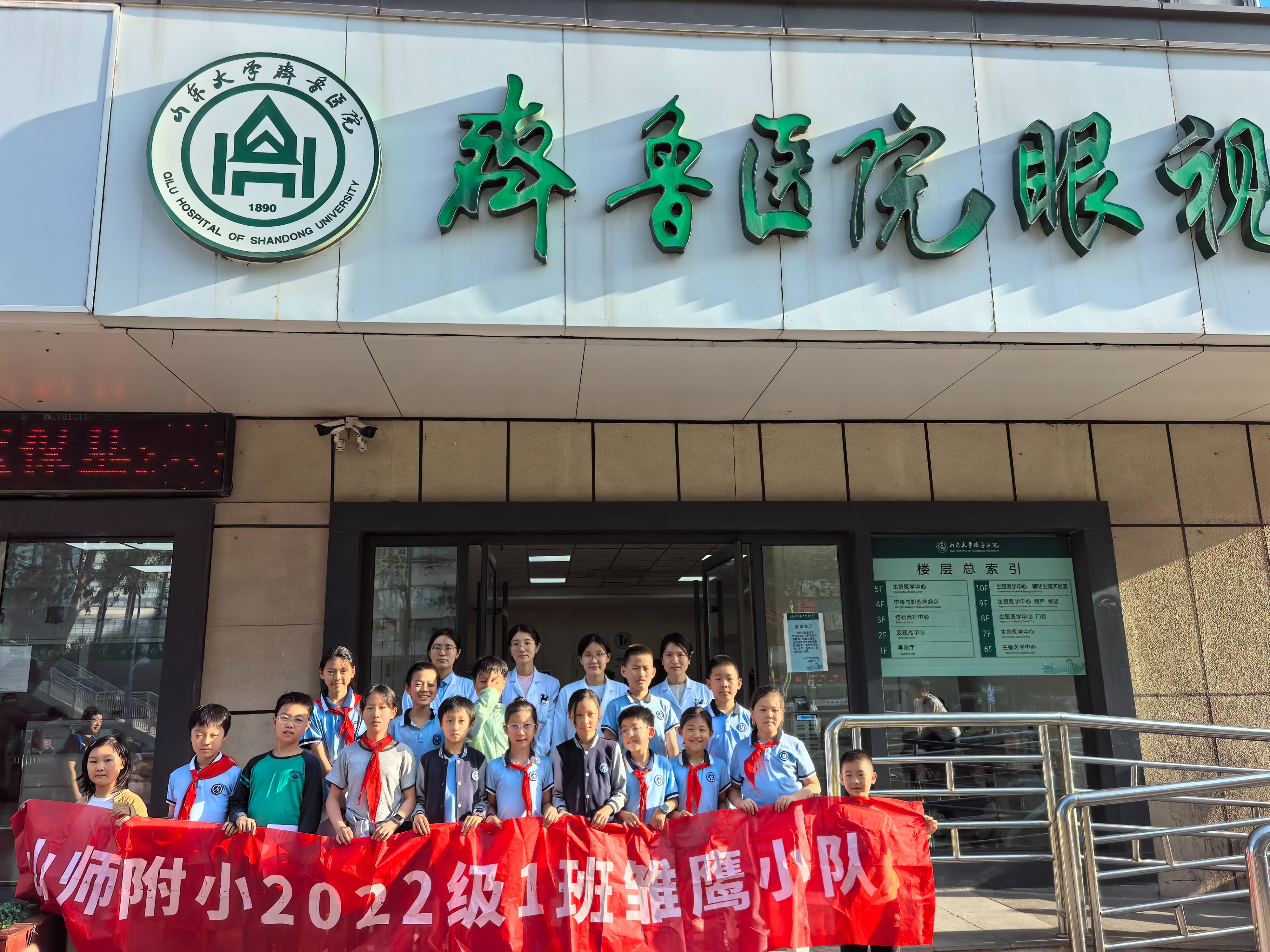 为全面普及科学用眼知识,提升青少年爱眼护眼意识,让大家近距离感受眼视光医学的魅力,2026年4月18日,山师附小四(1)中队的少先队员们,来到齐鲁医院视光中心,开展了守护“睛”彩童年小小视光师主题体验活动,在趣味体验与专业科普中开启了一场爱眼护眼奇妙探索之旅。