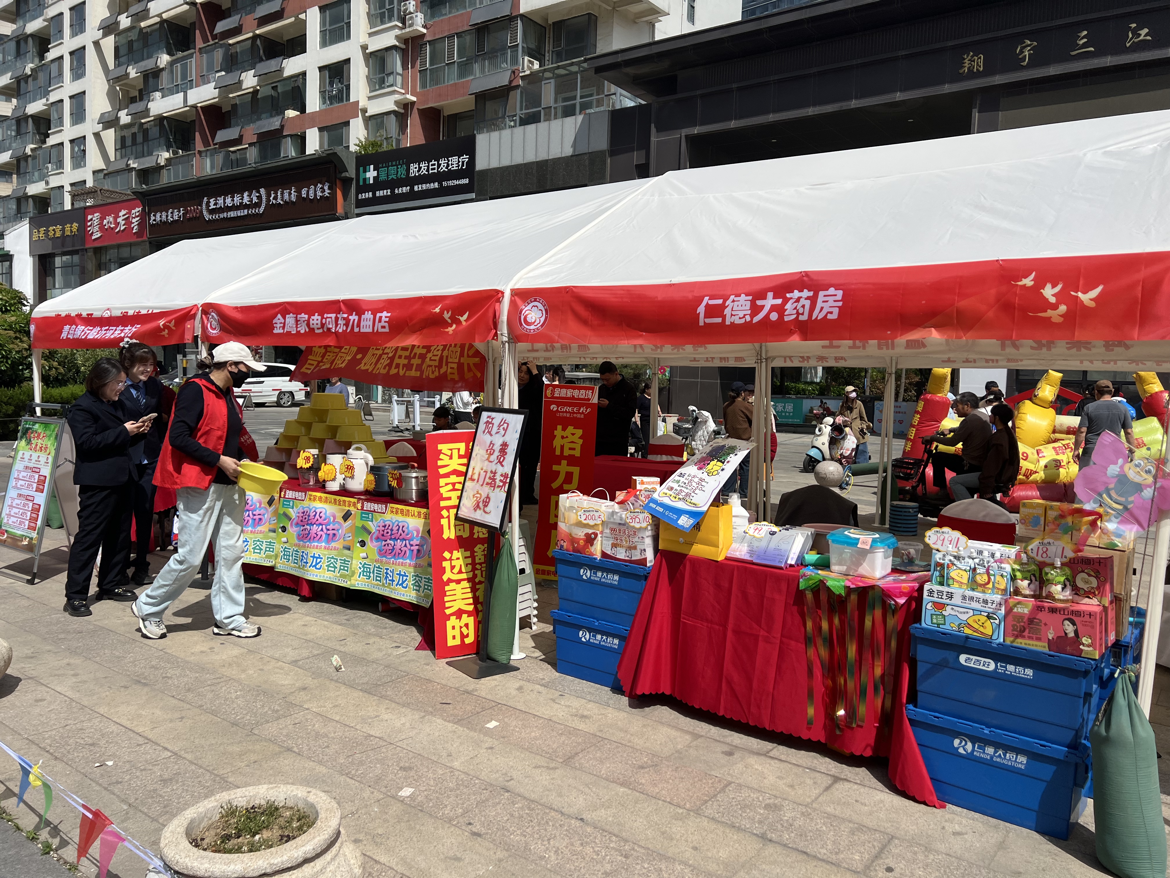 4月19日,临沂市河东区三江领秀社区南门沿街热闹非凡,“海棠花开河美社会”志愿服务社区行第二场活动在这里启幕。从8:30到15:00,十余项便民公益服务持续在线,各个志愿服务展位前人流不断,社区居民在家门口就享受到了一站式、接地气的暖心服务。