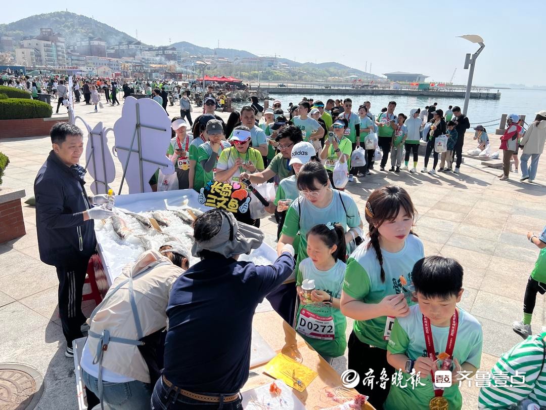 本届长岛踏青跑凭借秀美的山海风光,吸引了全国各地跑者齐聚。更具特色的是,本次踏青跑的补给格外“有分量”,将海岛最鲜的馈赠送到跑者身边。
