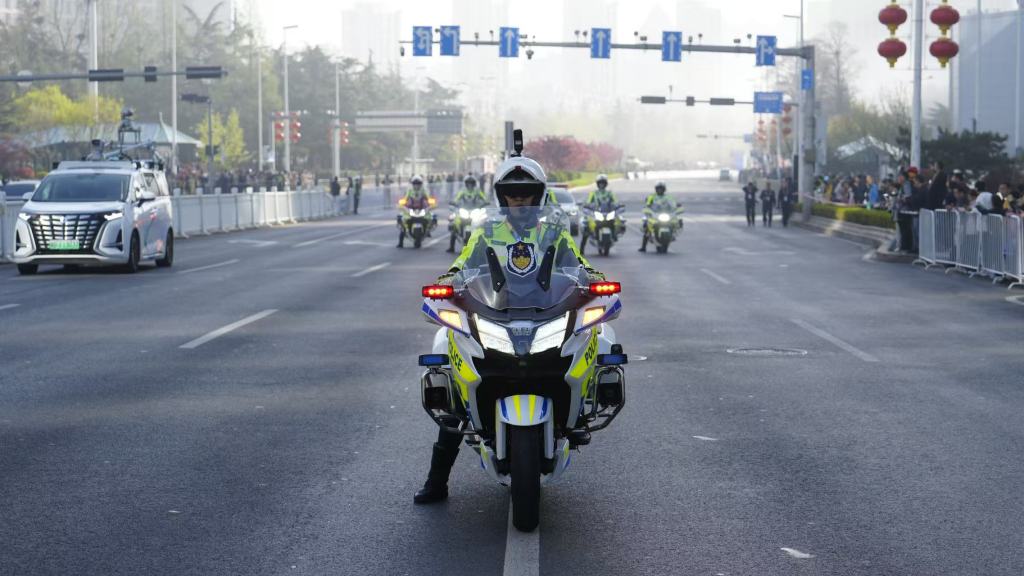 赛事期间,公安交管部门全力做好指挥调度、道路清障、定点布岗、交通管制、路况巡查、应急疏导等工作。铁骑队员为参赛人员开道护航,各执勤服务点民辅警严格做好赛道及周边道路的交通秩序维护,对香港中路、海口路、贵州路等主要赛事路段过往车辆进行定点疏导、分流引导、区域管制。同时根据赛事进程,及时解除管制、恢复交通,实时发布交通信息,有序引导赛事接驳车辆,全力保障群众出行安全顺畅。全体参勤民辅警警容严整,举止规范,热情帮助参赛运动员、观赛群众、市民游客130余人次,为赛事的顺利进行提供坚实保障。