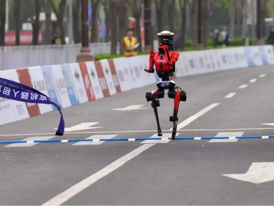 4月19日,在全球首个人形机器人马拉松品牌赛事2026北京亦庄人形机器人半程马拉松赛场上,来自北京荣耀的齐天大圣队“闪电”机器人凭借50分26秒(净用时)的成绩获得冠军。详情>>