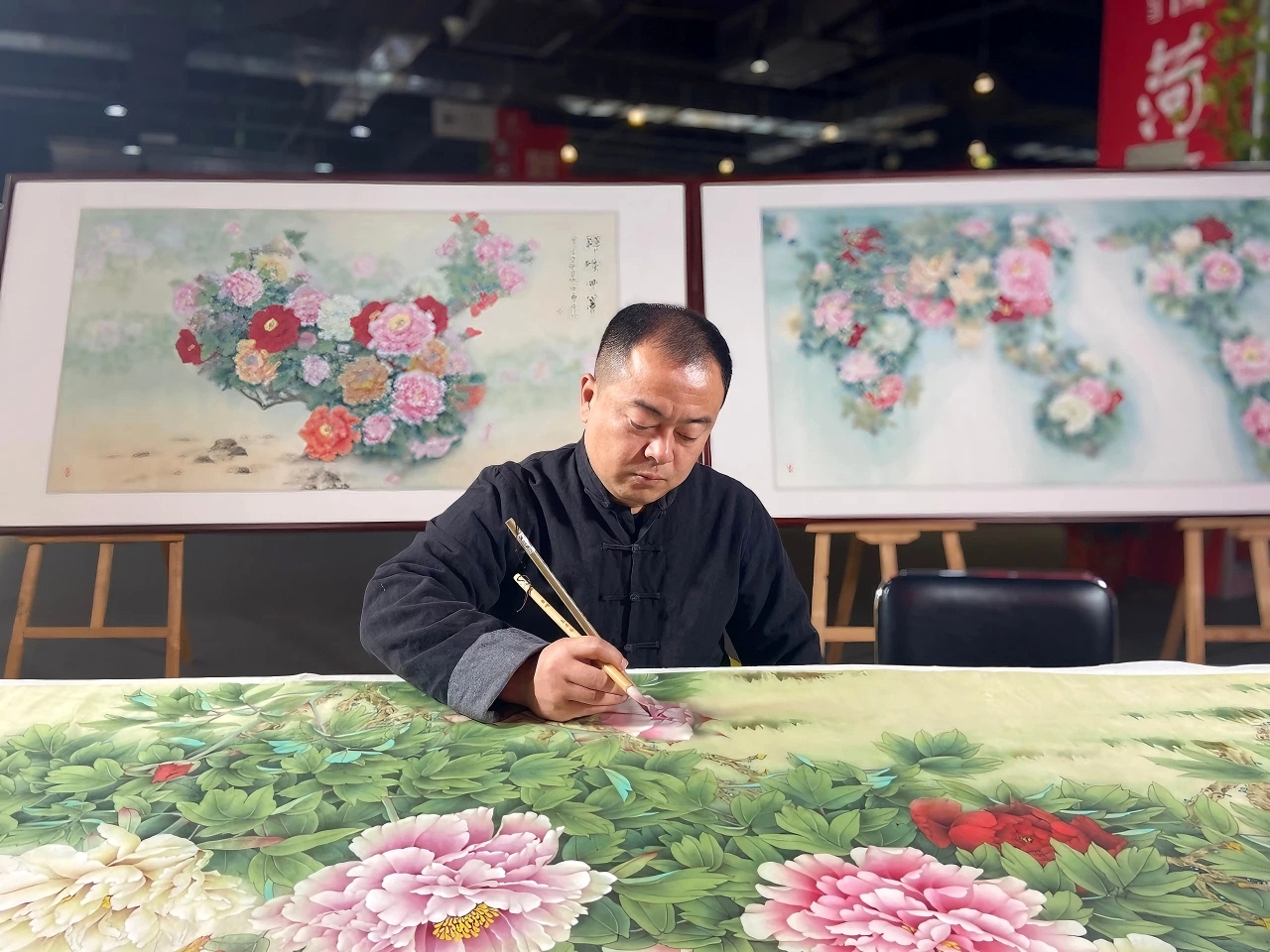 如今,工笔牡丹画早已不仅是艺术品,更成为推动巨野县域特色经济发展、助力乡村振兴的重要产业。作为“中国农民绘画之乡”“中国工笔画之乡”,这里许多画师“农忙时挥锄,农闲时执笔”,艺术与生活浑然一体。