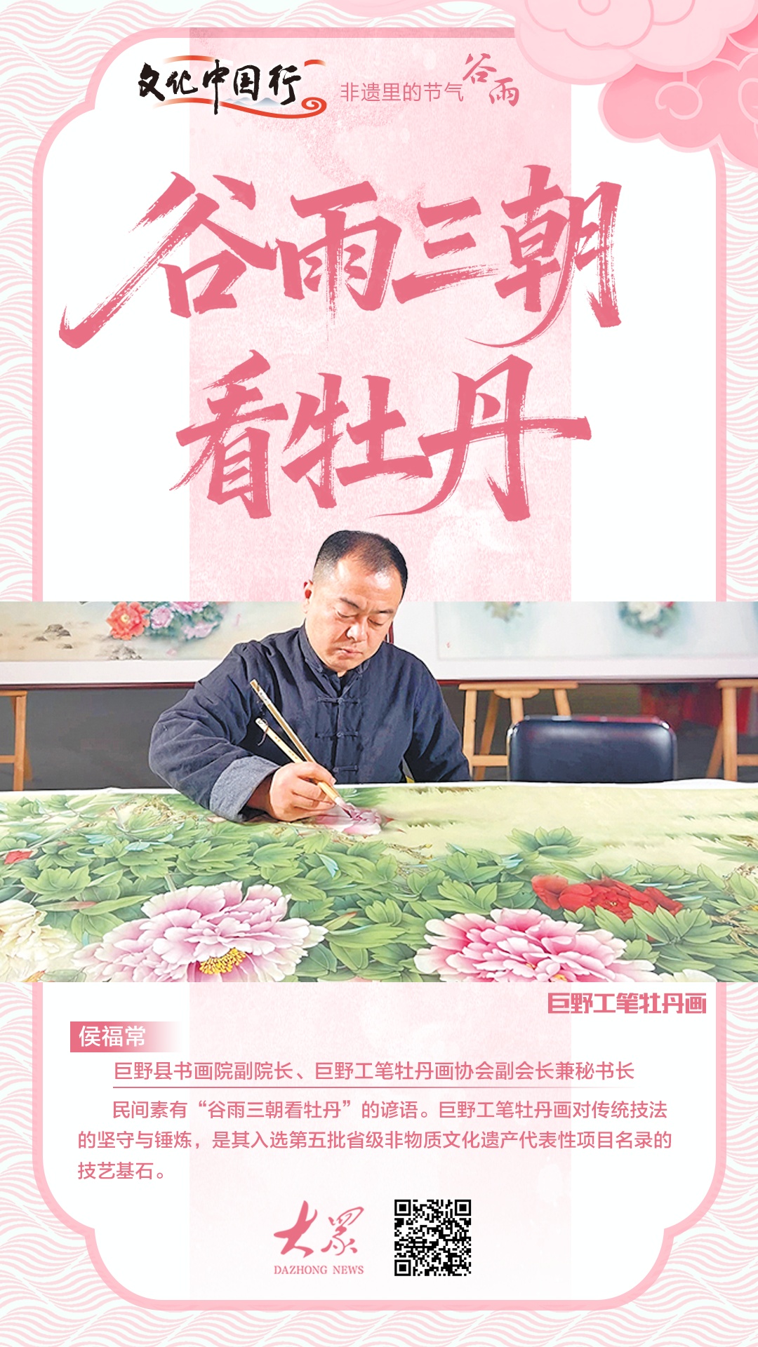 谷雨时节将至,在菏泽市巨野县的一间画室里,巨野县书画院副院长、巨野工笔牡丹画协会副会长兼秘书长侯福常,正为他筹划已久的“花开盛世”系列潜心创作。对侯福常而言,这不仅仅是一幅工笔牡丹画的起笔,更是一场与节气的对话。