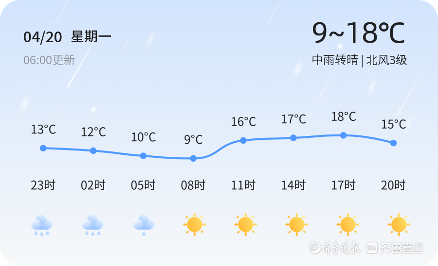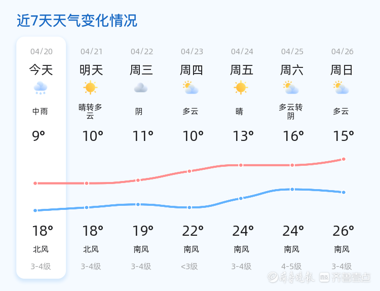 谷雨时节济南迎来中雨转晴天气 明日天气转好 气温波动需注意AI写稿 2026-04-20 06:16:00济南未来三天天气多变,气温波动较大。市民需及时关注天气预报,合理安排出行,特别是雨天路滑,驾车需减速慢行,确保交通安全。责任编辑:AI小壹