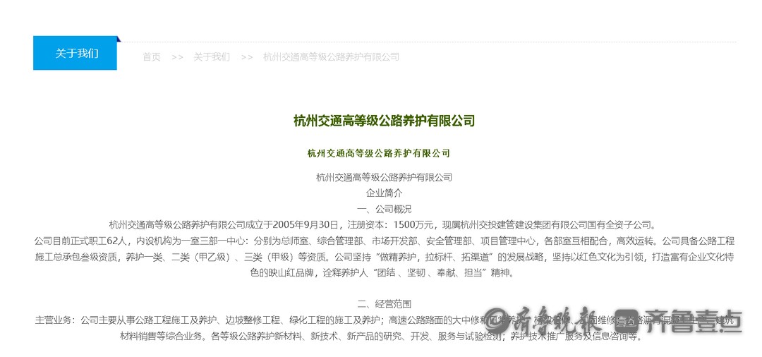 杭州交通高等级公路养护有限公司成立于2005年9月30日,注册资本:1500万元,现属杭州交投建管建设集团有限公司国有全资子公司。