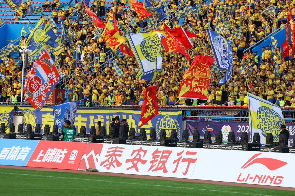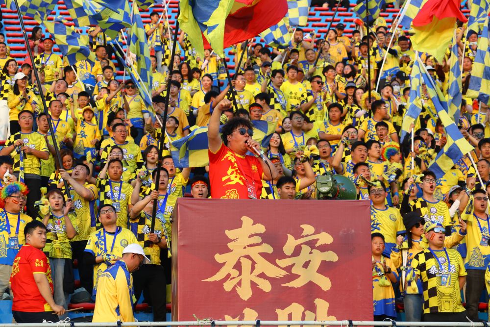 球迷正在为泰安队加油。