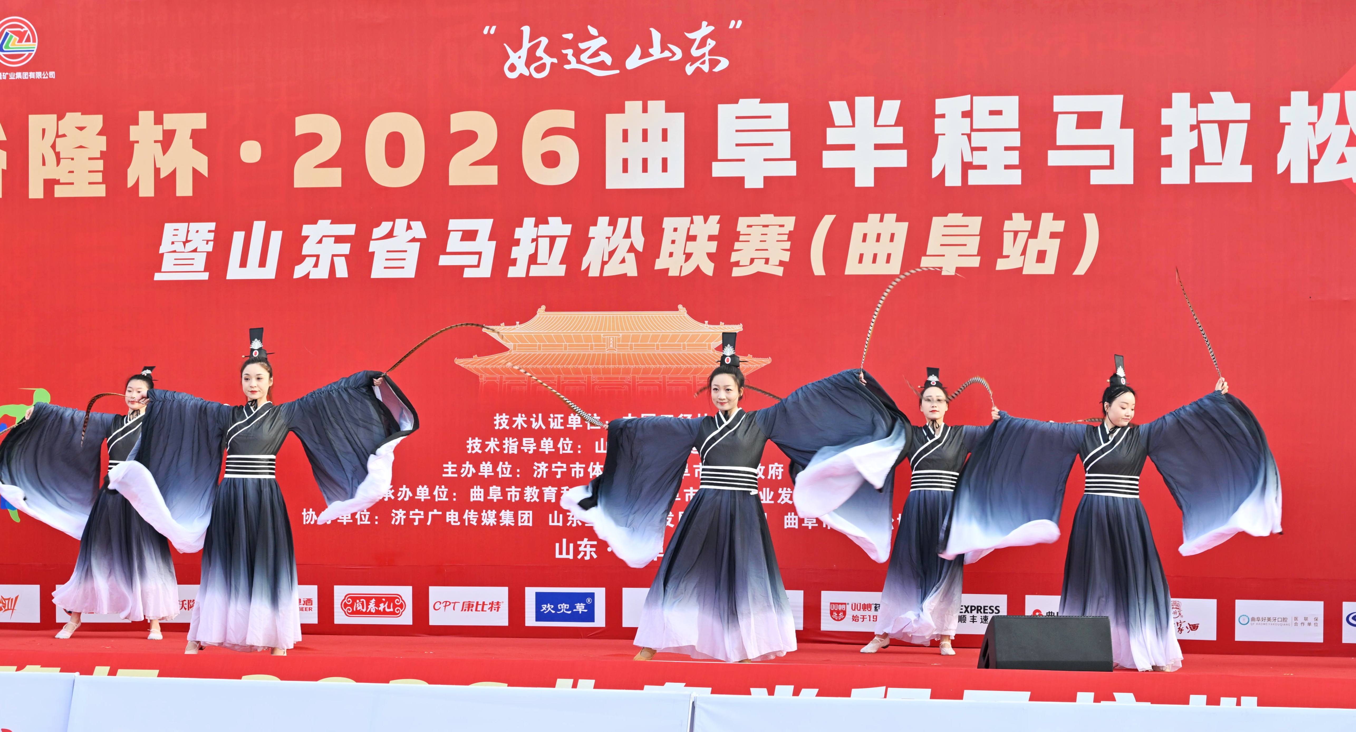 赛事深度践行“体育+文旅”融合理念,打造了一场独具曲阜特色的文化马拉松。开幕式上演《旗开得胜》《儒风大同》等礼乐节目;赛道沿线13处主题展演,汉服志愿者持《论语》名句助威,太极拳、传统舞蹈轮番上演。同期举办马拉松博览会,设非遗文化、农特美食、体育健康、商业服务四大展区,楷木雕刻、尼山砚等非遗展演,孔府煎饼、闻春礼烧鸡等特色美食齐聚,让跑者一站式感受圣城文化与特色好物,也让赛事成为传播儒家文化、讲好曲阜故事的重要窗口。