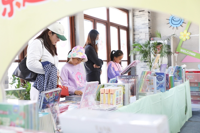 在活动主会场栖霞街,“赶海拾趣”文化市集人流如织。市集设置图书展销、文化展示、休闲餐饮、文娱互动四大功能区,“一站式”提供阅读打卡、非遗文创、特色好物、科普互动、亲子阅读、轻食茶饮等体验。