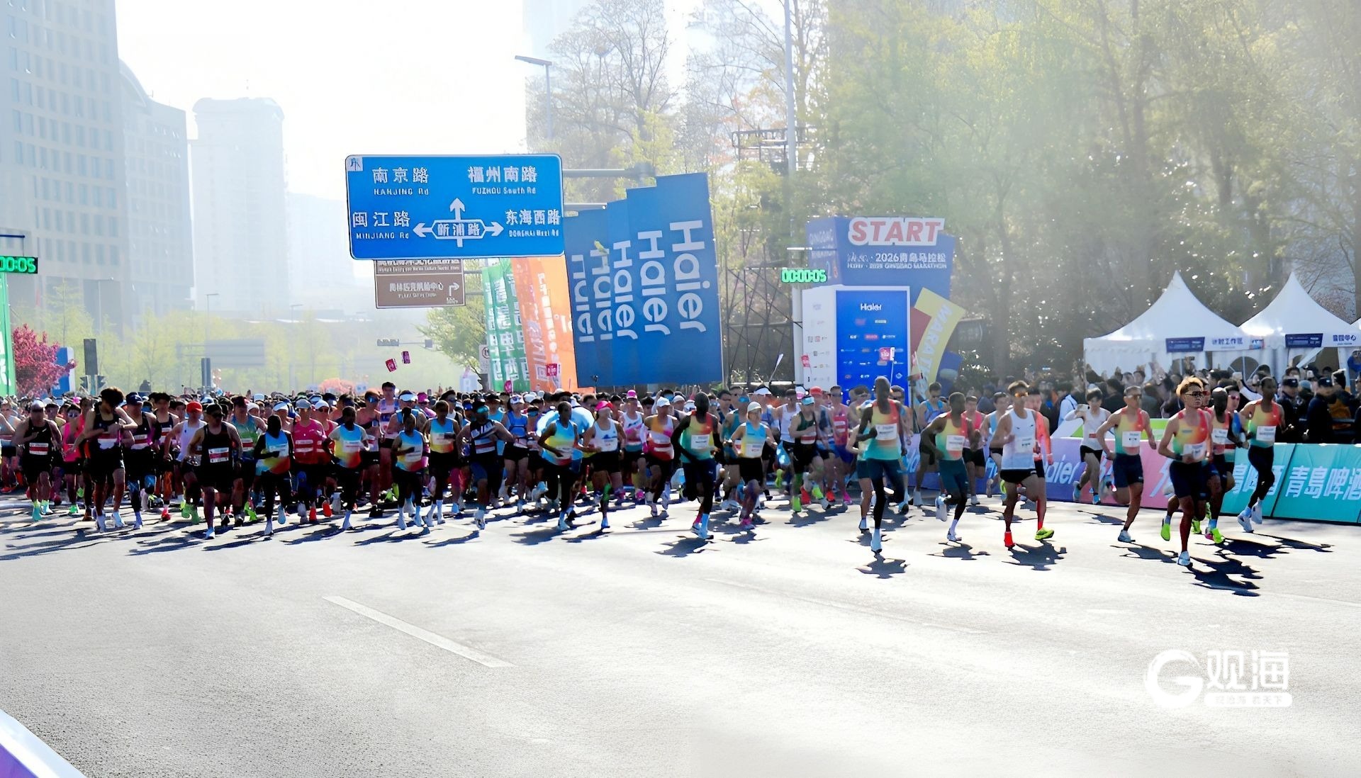 4月19日,海尔·2026青岛马拉松鸣枪开跑。