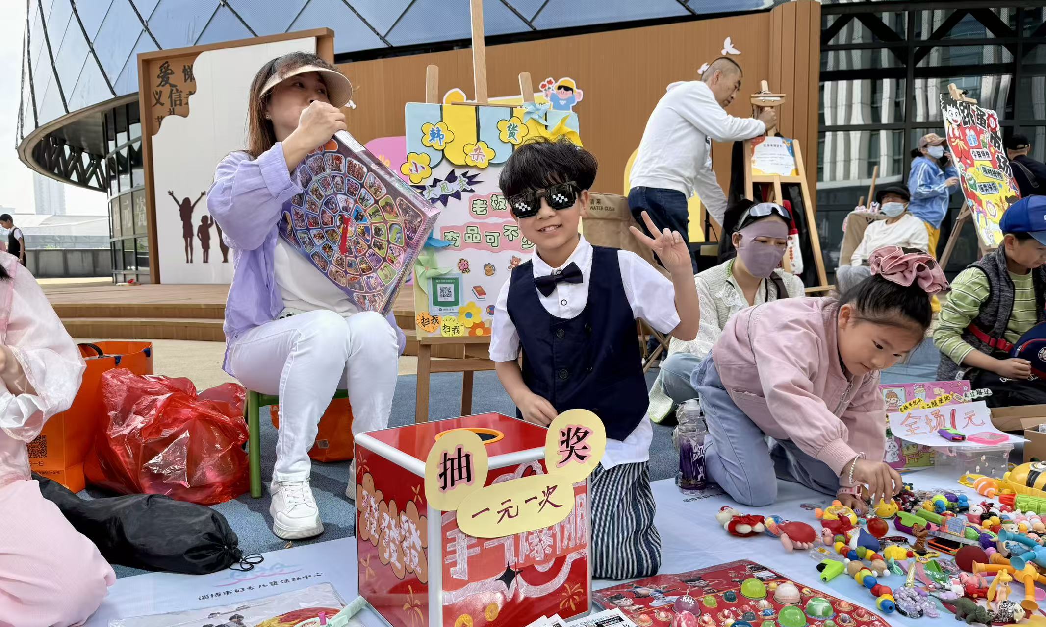一方小小市集,便是一堂广阔成长课堂。现场欢声笑语、吆喝不断,宛如趣味寻宝乐园。小掌柜们各展所长,有的高举招牌卖力叫卖,有的开设对联比拼、盲盒、套圈、幸运刮刮乐等互动游戏,还有的推出“买一送一”等促销活动。小掌柜认真核算成本、灵活定价;小顾客货比三家、讨价还价,热闹非凡。
