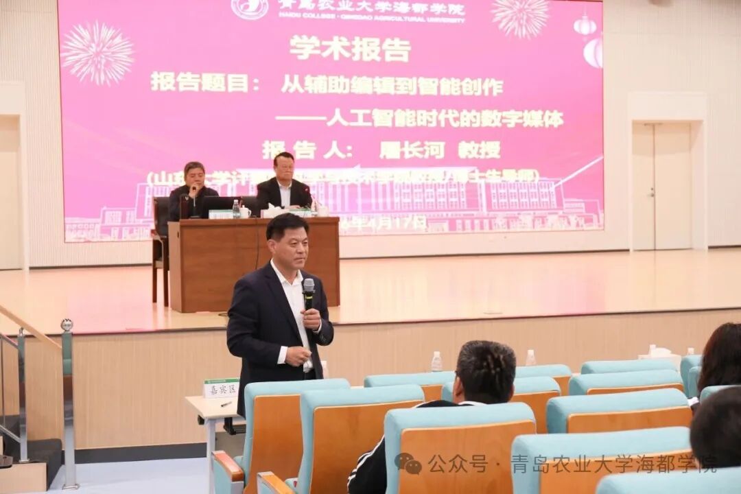 为进一步浓郁校园学术氛围,提升国家基金项目申报质量,助力“十五五”规划前期研究,4月17日,青岛农业大学海都学院先后举办了两场高水平学术报告会,分别邀请我国数字媒体与智能图形学领域权威专家、山东大学屠长河教授,以及我国人口大数据与社会保障领域知名学者、浙江大学米红教授来校讲学。副校长范辉主持两场报告会,校务委员会主任杨同毅为两位教授颁发特聘教授聘书。全校干部、教师及学生代表共计200余人参加活动。