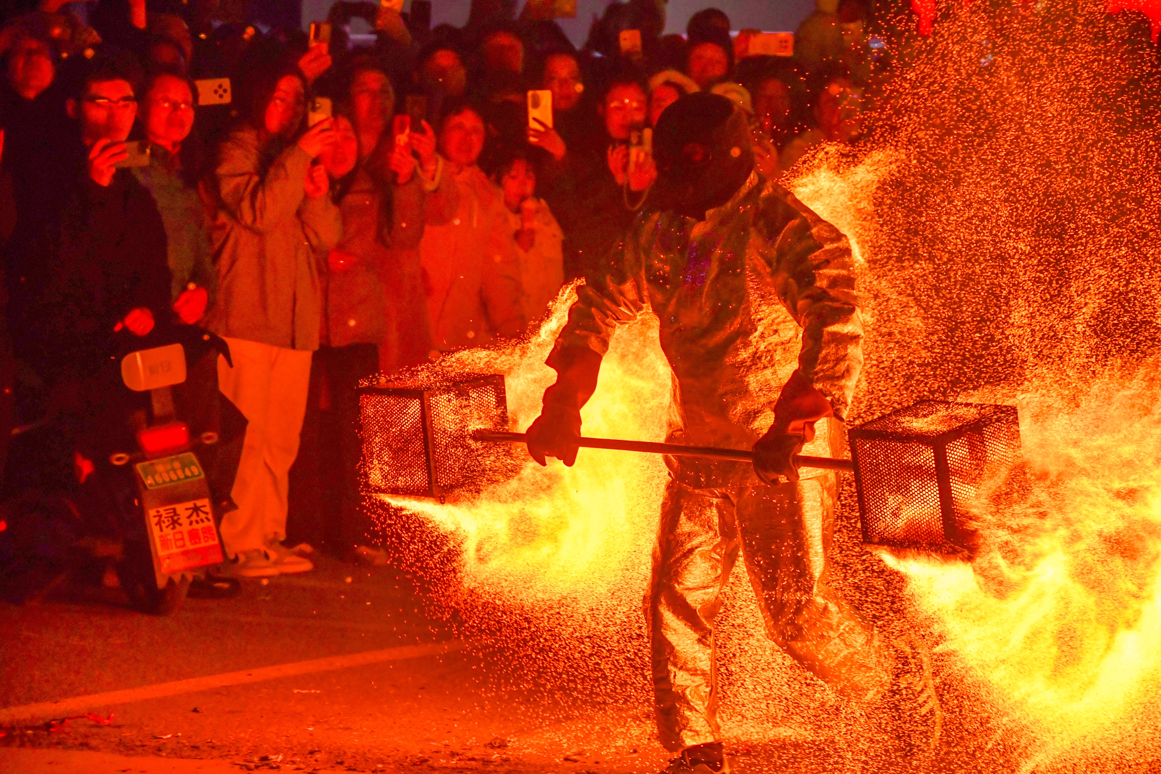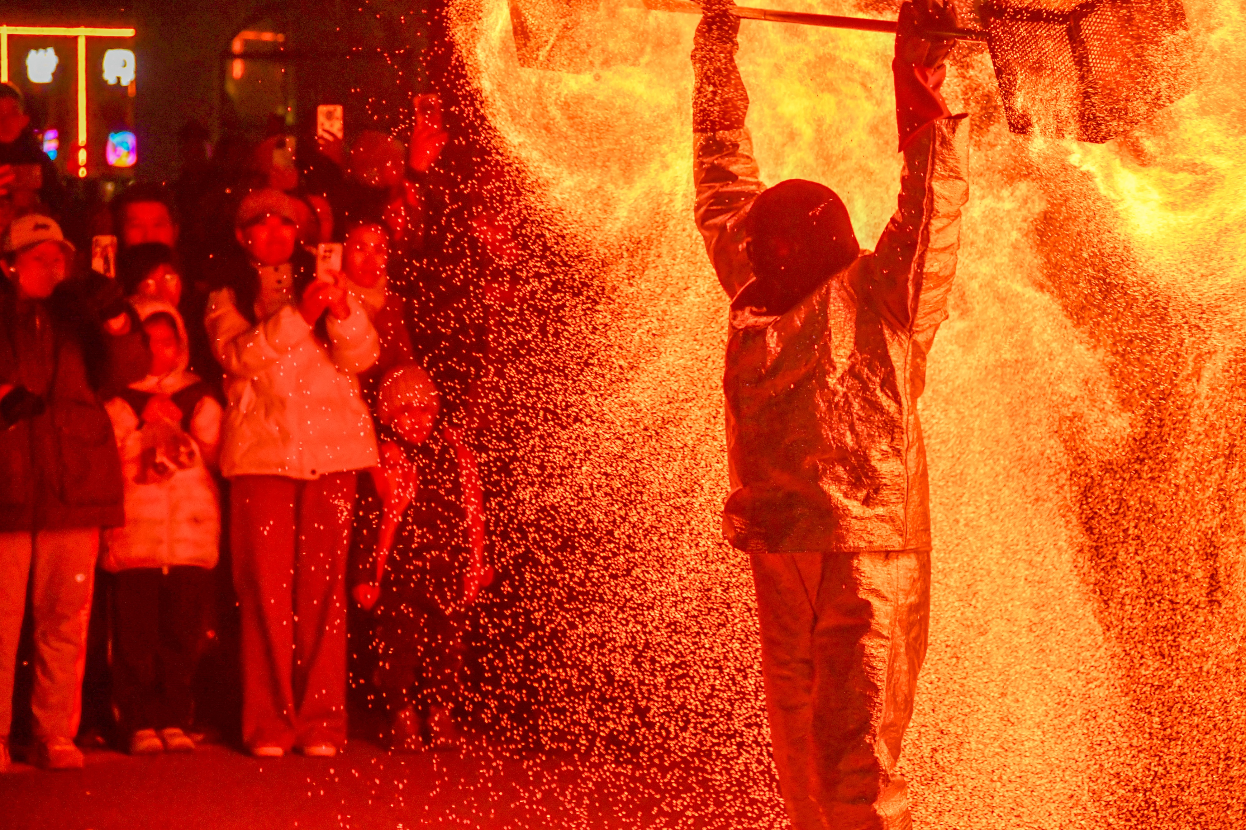 拍摄上可改进,比如适当变换机位视角,控制曝光避免火星高光溢出,精简杂乱背景突出主体,通过动静、虚实、远近对比丰富画面层次,同时完整记录表演起承转合,提升作品的纪实性与观赏性。