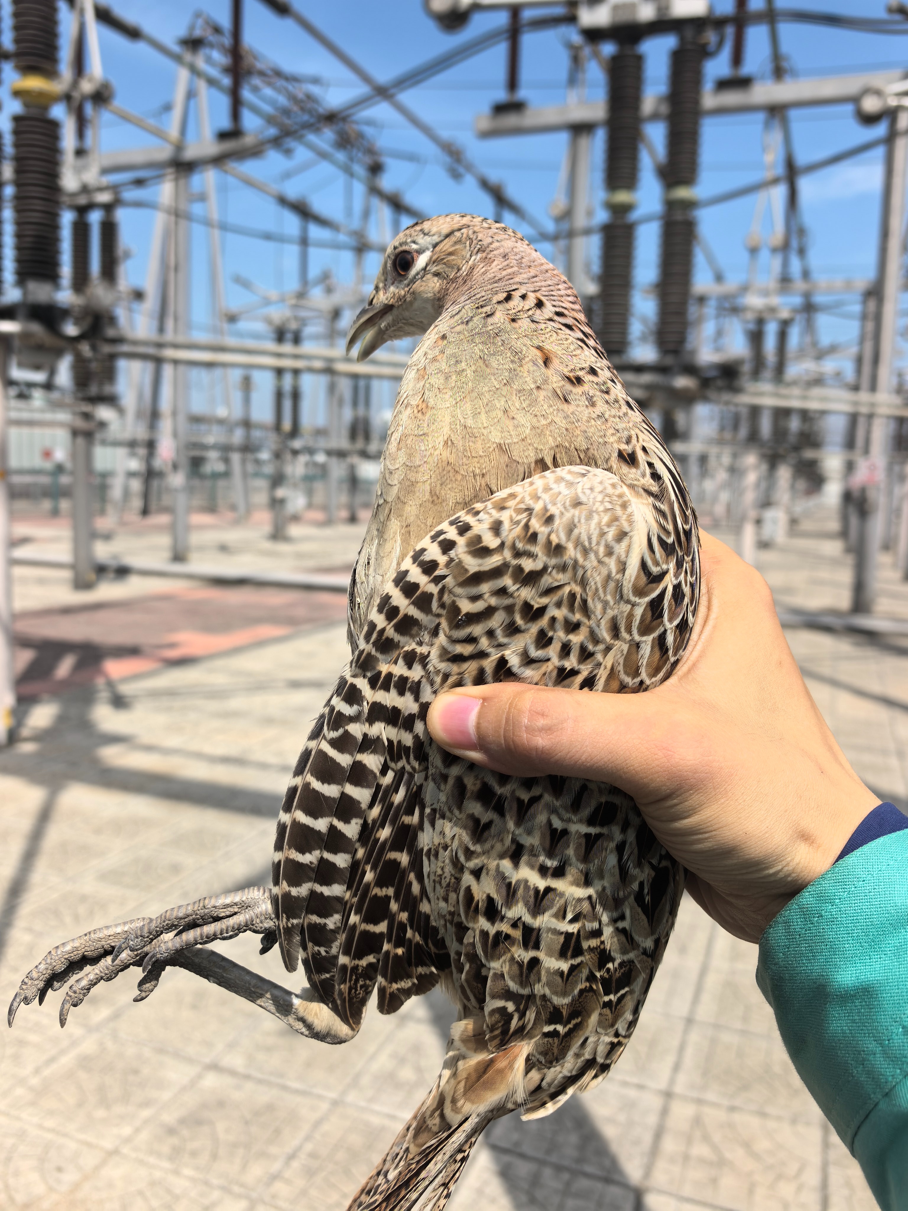 “小心,别吓到它,脚步轻一点。”近日,在山东淄博220千伏桓台变电站内,国网淄博供电公司变电运维中心员工刘故帅和同事们正按照计划对站内设备开展春季巡视。突然,一阵急促的扑棱声从头顶传来——一只灰褐色的身影拖着长长尾羽,猛然越过变电站高高的围墙,来到站内10千伏电容器设备区外。