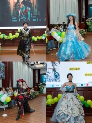 活动现场,各参赛队伍巧思迸发,怀揣对环境的关爱之心,以废弃书法字帖、塑料膜、旧渔网、奶茶袋、旧床单等常见废弃物为原料,精心制作出一件件兼具美学价值与环保意义的时装。从复刻马面裙的传统国风设计,到彰显未来感的铝箔材质创作;从呼应“敬惜字纸”传统的纸艺时装,到呼吁海洋保护、守护蓝色家园的塑料编织作品,每一件作品都承载着学子们对绿色发展的深刻理解,凝聚着对环境的赤诚关爱,传递着“垃圾是放错地方的资源”的核心理念,更展现了青年一代守护生态、关爱环境的创新思维与家国情怀。