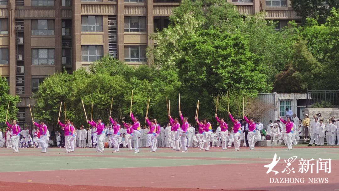 四月泉城,春风和煦,拳意正浓。4月19日上午,泉海小学体育场上鼓点铿锵、衣袂翩跹,由济南市杨式太极拳研究会主办的纪念“世界太极拳月”大型太极拳、械宣传展演活动在此热闹启幕。来自全市各区县的1100名太极拳爱好者齐聚一堂,以武会友,共襄这场传统武术与全民健身交融的春日盛会。