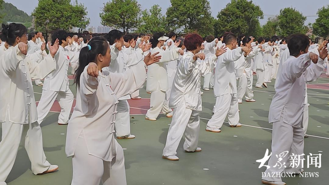 上午9时,伴随着悠扬的古琴旋律,千名身着统一练功服的太极爱好者缓缓起势,共同展演“二十四式简化太极拳”。白鹤亮翅、手挥琵琶、左右搂膝拗步……一招一式如行云流水,刚柔并济间尽显太极神韵。千人方阵整齐划一,场面蔚为壮观。