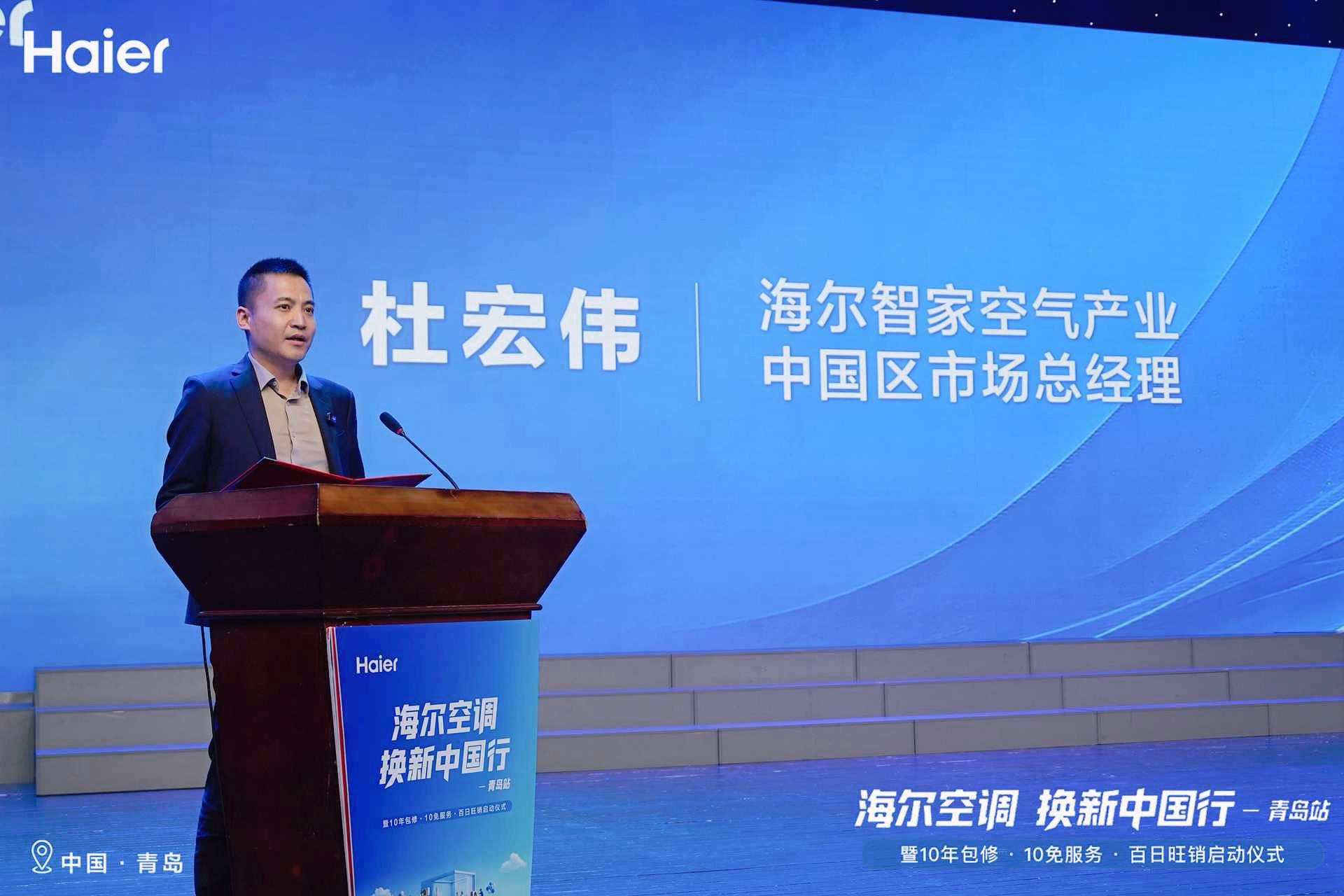 海尔智家空气产业中国区市场总经理杜宏伟在致辞中强调,海尔空调始终坚持以用户为中心,深耕空气产业,本次在青岛正式发布两大重磅承诺: