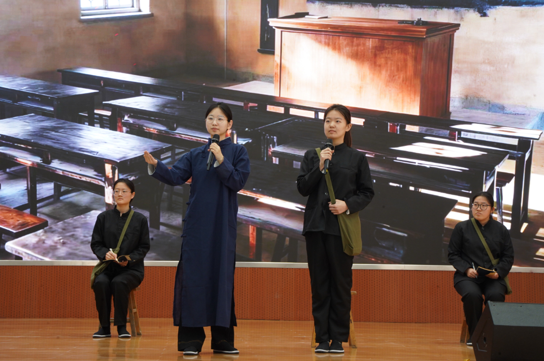 创新红色实践,让党性教育“活”起来。外国语学院5名实习学生党员范旭骐、石新宇、徐婧、康玉杰、任梦月以“红色基因润童心,外语追梦向未来”为主题,自编自导自演了红色情景短剧《寻路》,描绘了沾化革命先辈于慎德不畏艰辛,矢志寻党,最终加入中国共产党、建立沾化县第一个党支部的历程,为学生们讲授了一堂生动鲜活的红色主题班会示范课。