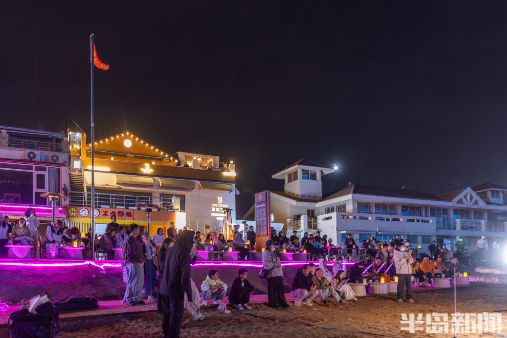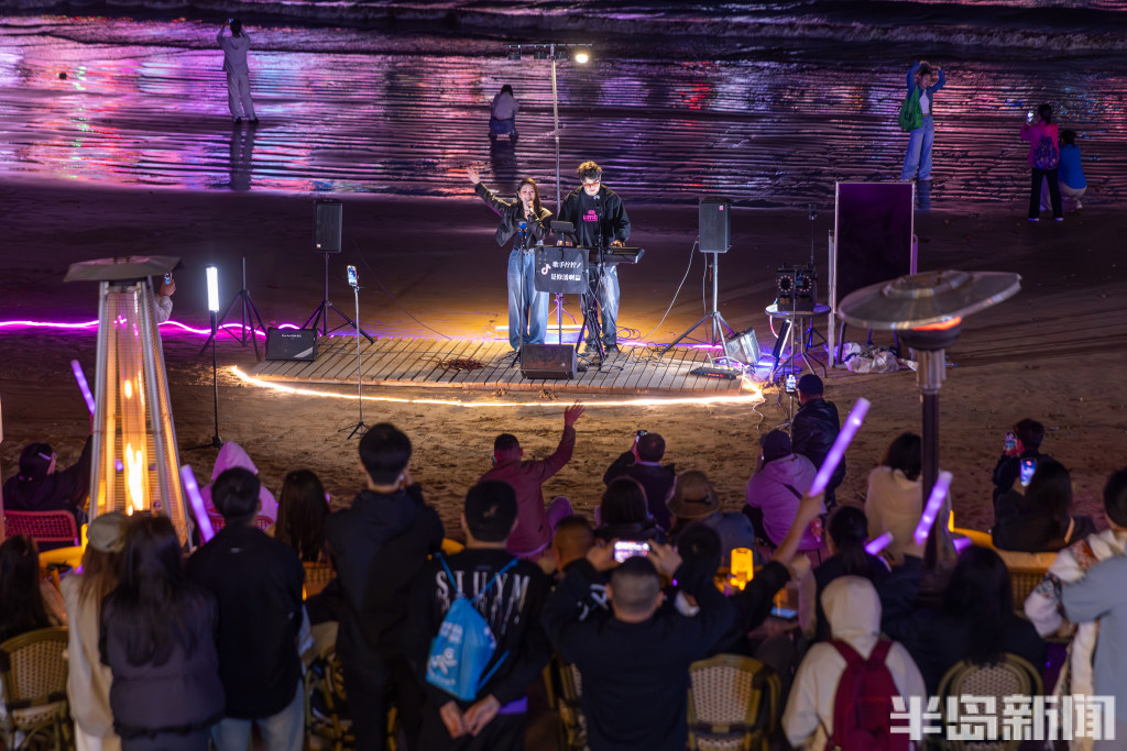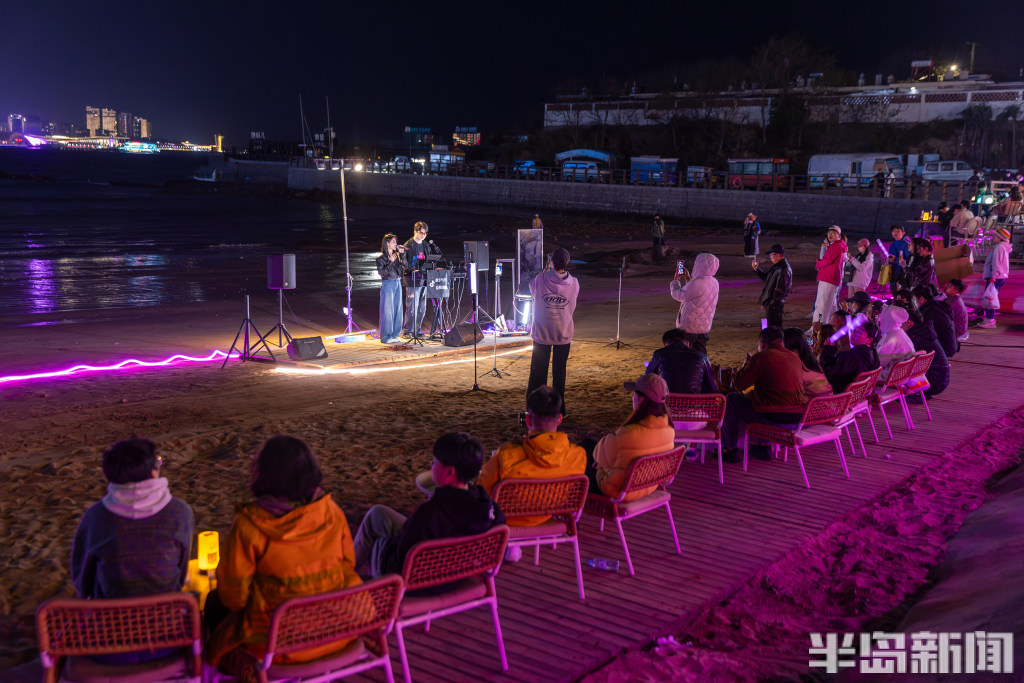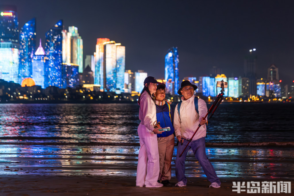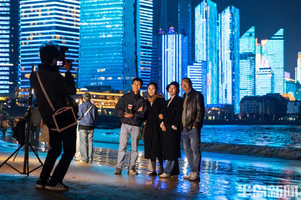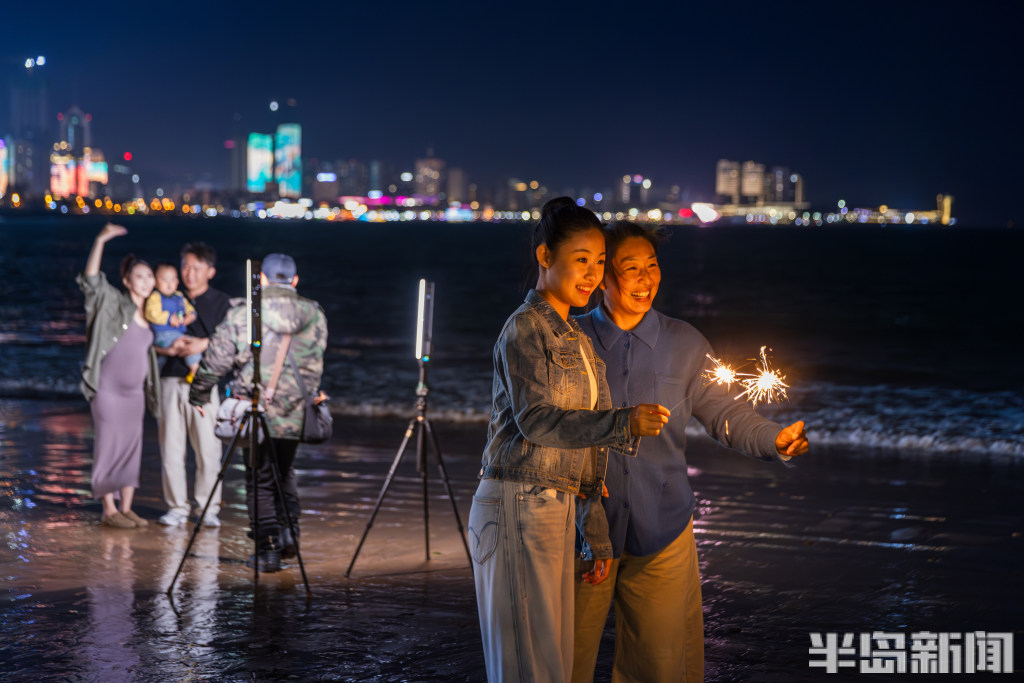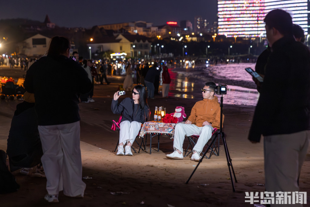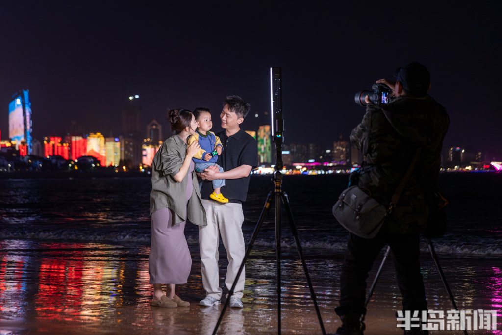 身处如此夜色之中,游客们纷纷在海边拍照留念,海岸线上灯光点点,人们的笑容与醉人的夜色交织在一起,构成春夜岛城一幅动人的画卷。