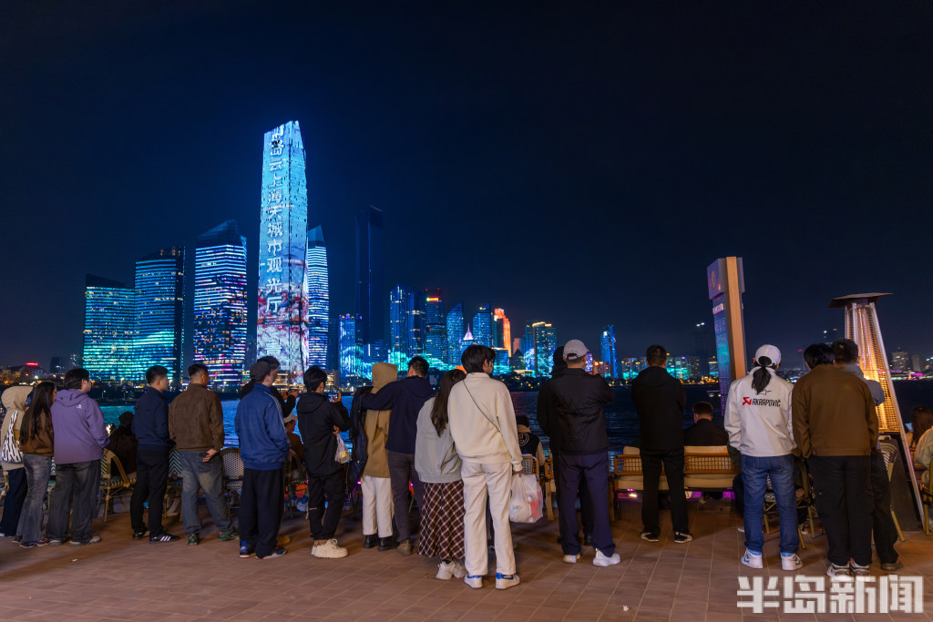眼下虽然还未进入岛城旅游最旺季,但夜色之中的三浴已是颇有人气。当春日的晚风拂过海滨,三浴便迎来了一天中最迷人的时刻。夜幕降临,浮山湾畔高楼林立,一场绚丽的灯光秀动人上演,将整个海湾装点得如梦似幻,吸引了大批游客前来观赏。