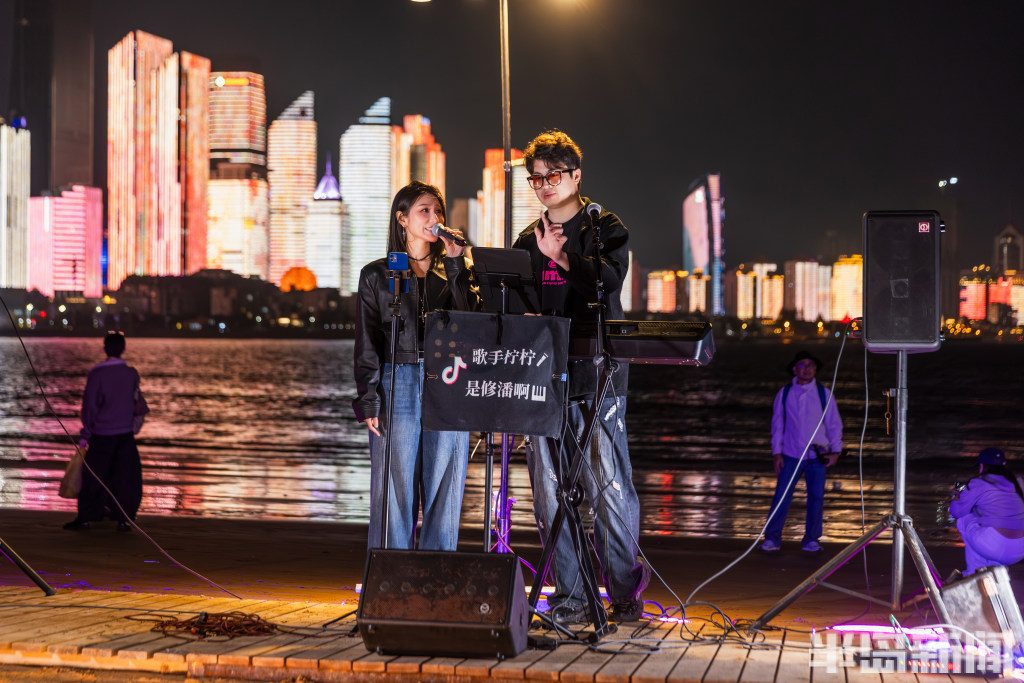 沙滩上,歌手唱出浪漫醉人的歌曲,乐手在琴键上演奏出动人的旋律。人们坐在海边,边观看灯光秀边欣赏音乐,在尚有些微凉的海风中品尝美食美酒,沉醉于海滨夜色的流光溢彩与温馨惬意。一些海滨餐饮店铺工作人员表示,进入四月份,随着天气转暖,店铺运营“节奏”就逐渐调整到旺季模式,一些桌椅、灯光等设施已就位,着力为游客打造最有氛围的休闲环境。