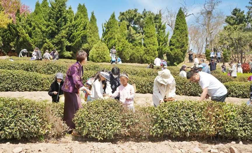 随着激昂鼓乐落幕,本次春茶采摘环节正式开启。现场嘉宾纷纷带上竹篓,移步绿意盎然的茶山,亲身沉浸式体验采茶乐趣,感受北纬36度浮山春茶的自然馈赠。春日鲜茶贵如金,亲手采摘的不仅是枝头嫩芽,更是对自然的敬畏、对匠心的传承。