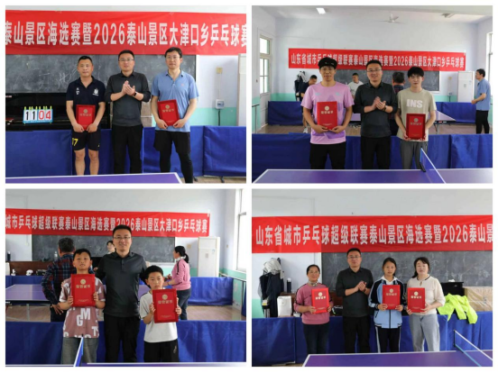 为丰富大津口乡群众精神文化生活,增强居民凝聚力,营造全民健身、和谐奋进的氛围,4月19日,由泰山景区文旅经济发展部主办,中共大津口乡委员会、大津口乡人民政府承办,山东省城市乒乓球超级联赛泰山景区海选赛暨2026泰山景区大津口乡乒乓球赛圆满结束,来自全乡50余名乒乓球爱好者齐聚赛场,以球会友、切磋技艺。